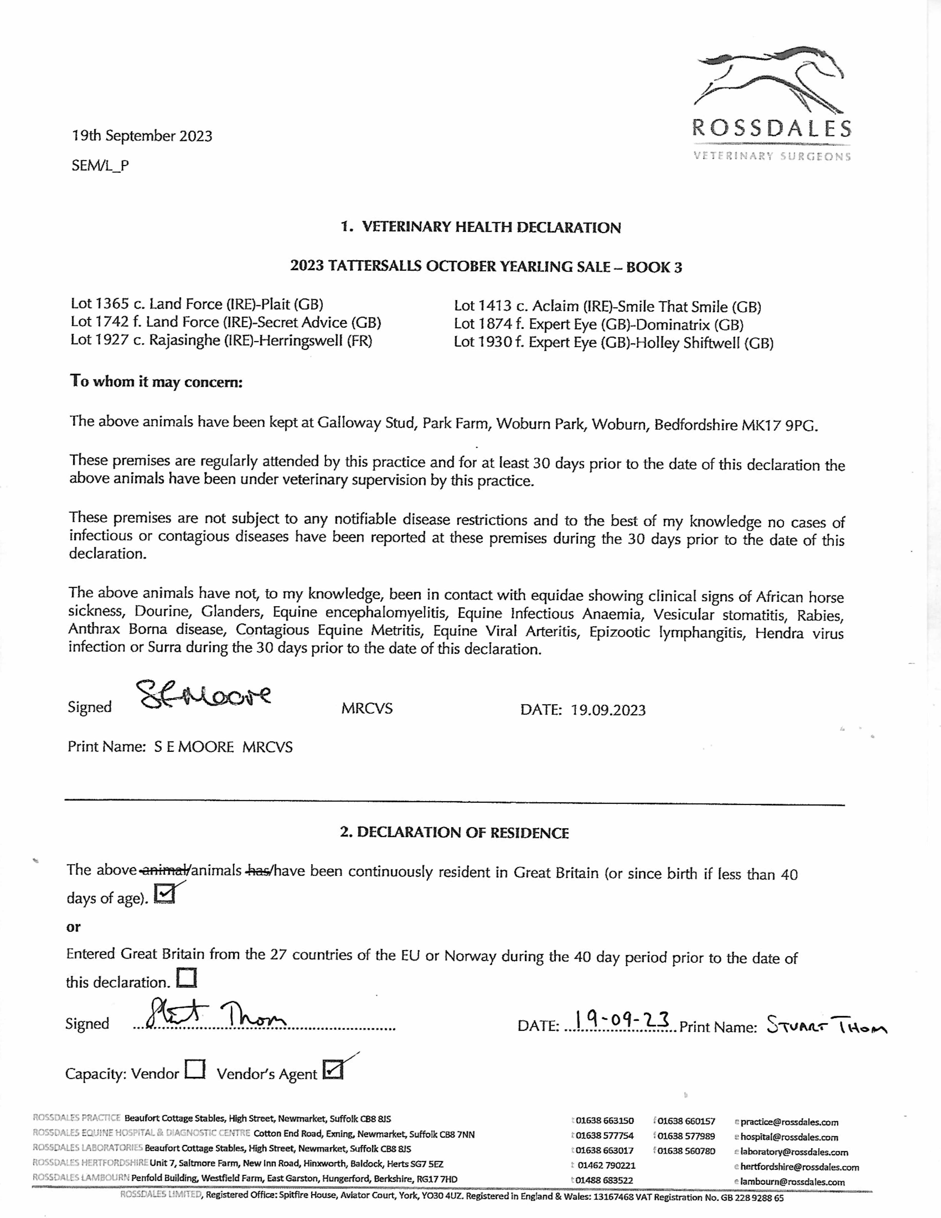 October Yearling Sale, Book 3 2022 lot 1684 F. by Starspangledbanner (AUS) 2021, Galloway Stud=>Michael Dods 40,000 gns