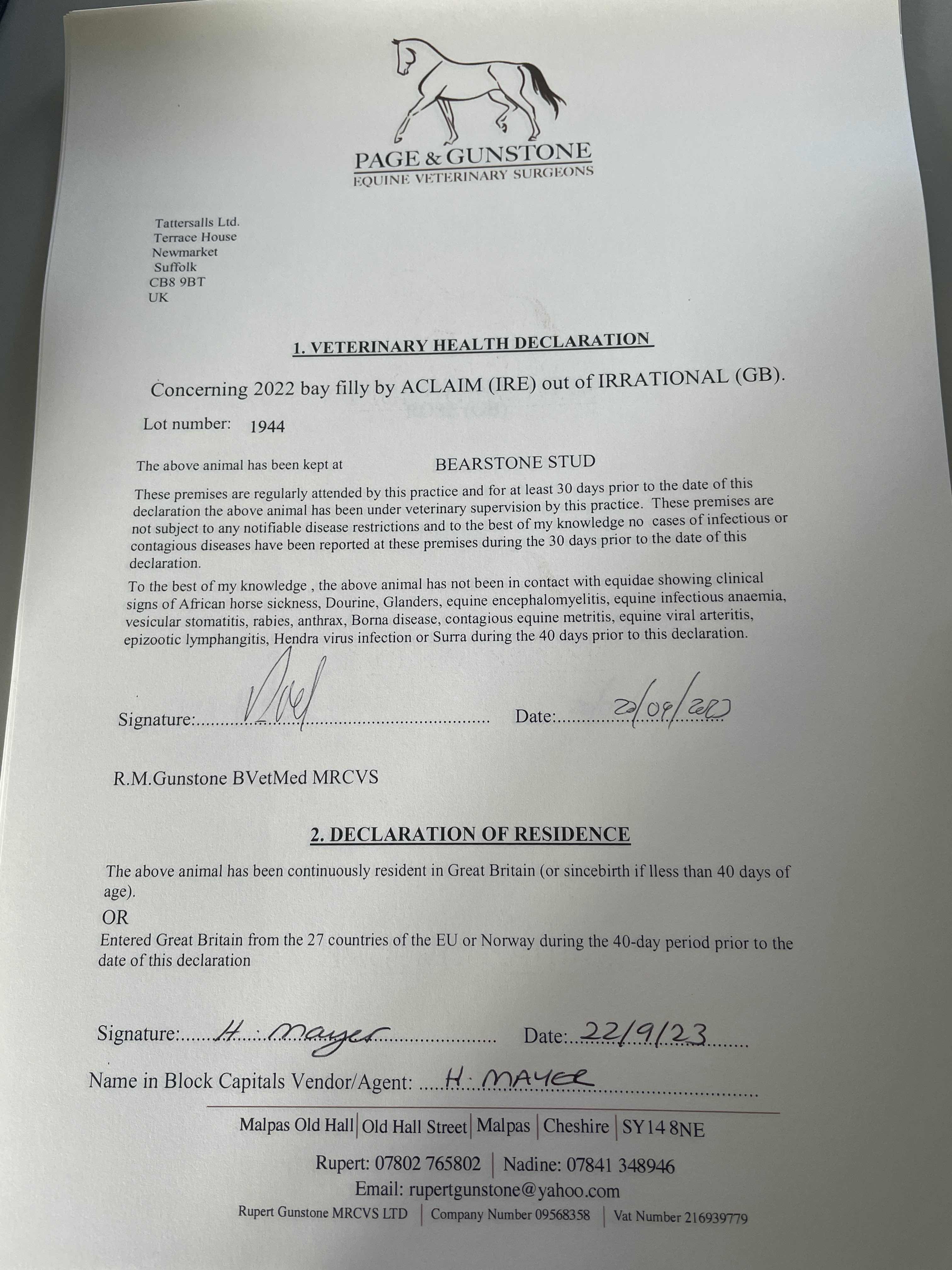 Consignor: Bearstone Stud