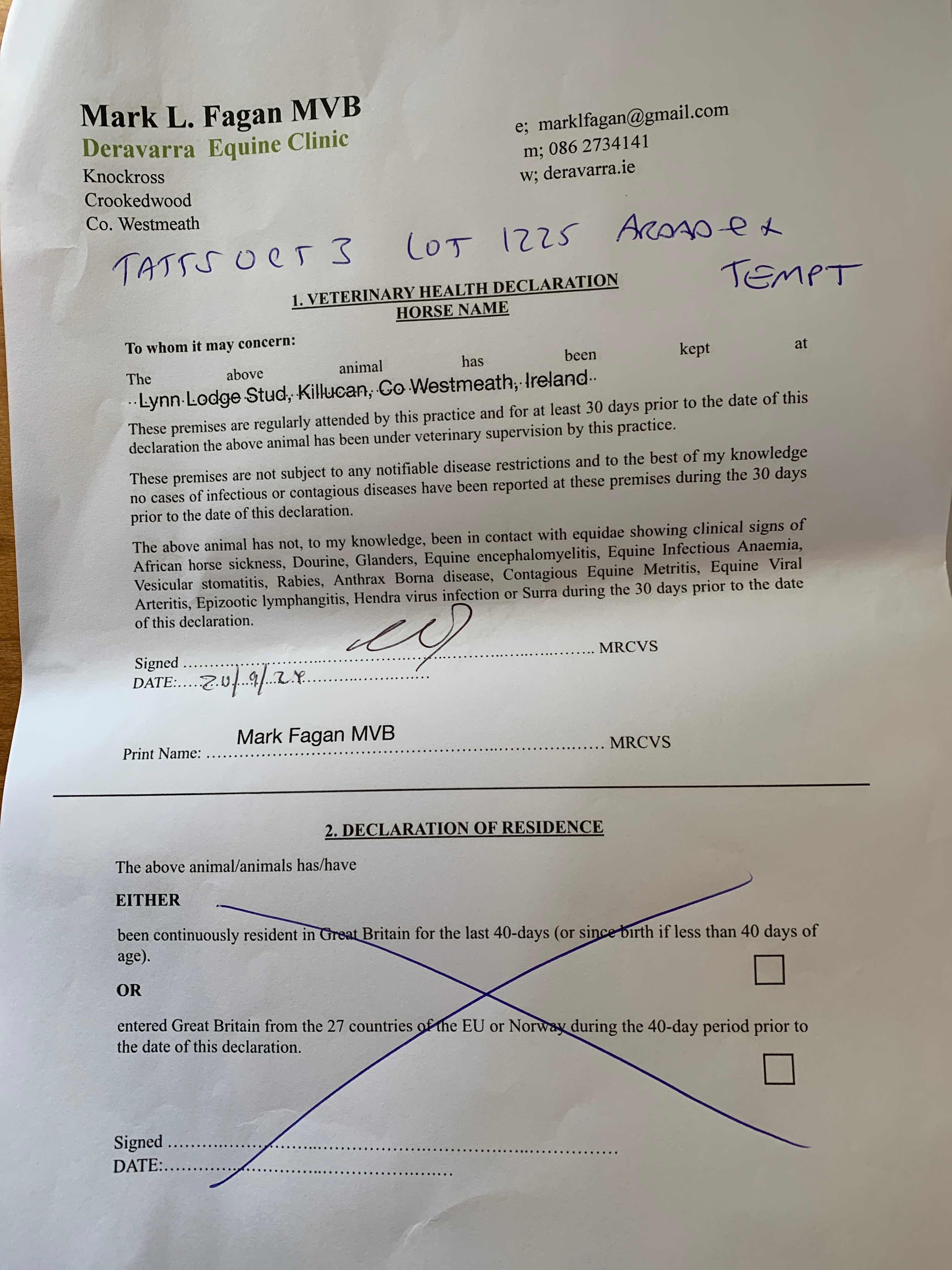 Consignor: Lynn Lodge Stud, Ireland