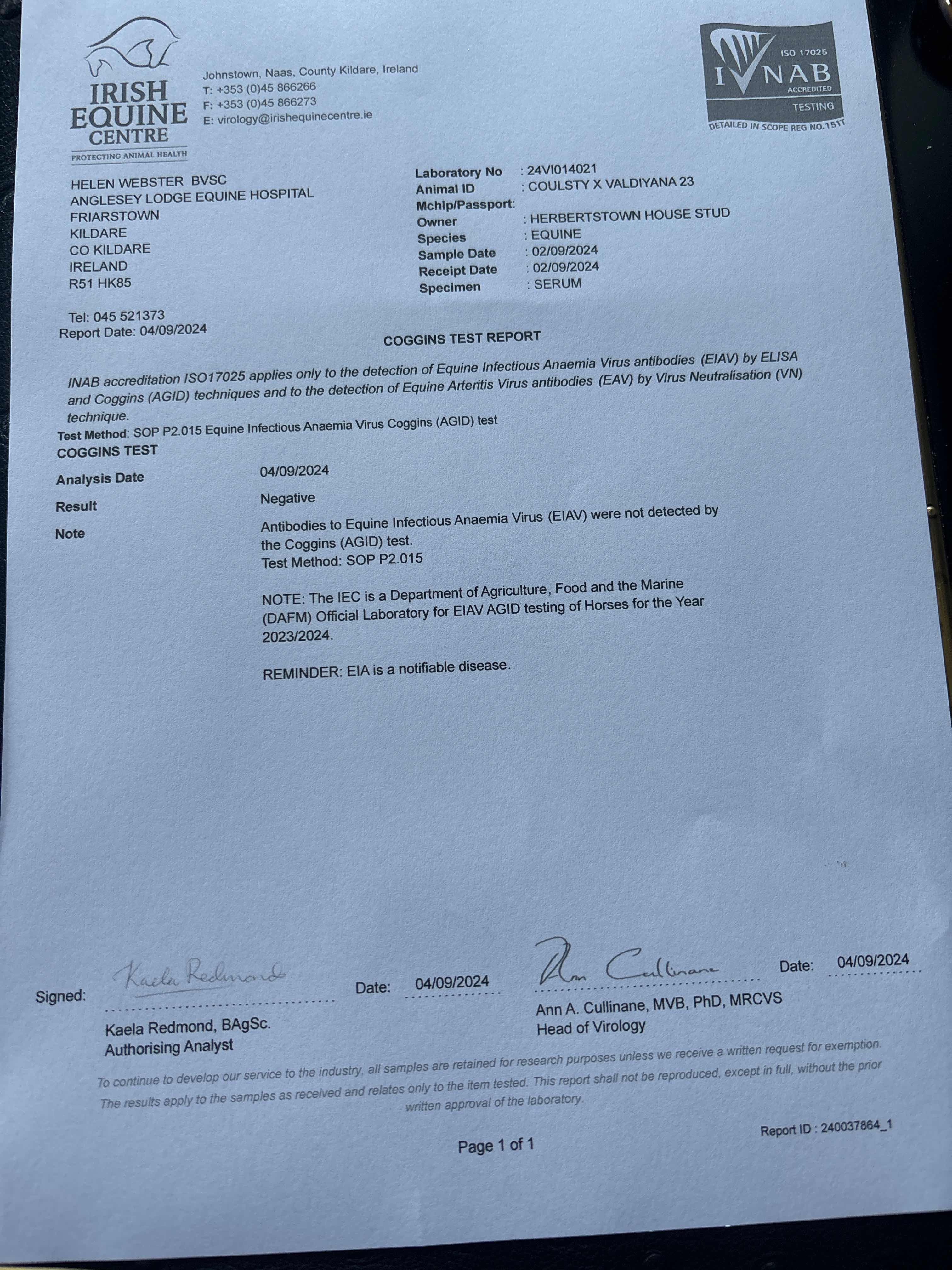 Consignor: Herbertstown House Stud (Co. Kildare), Ireland