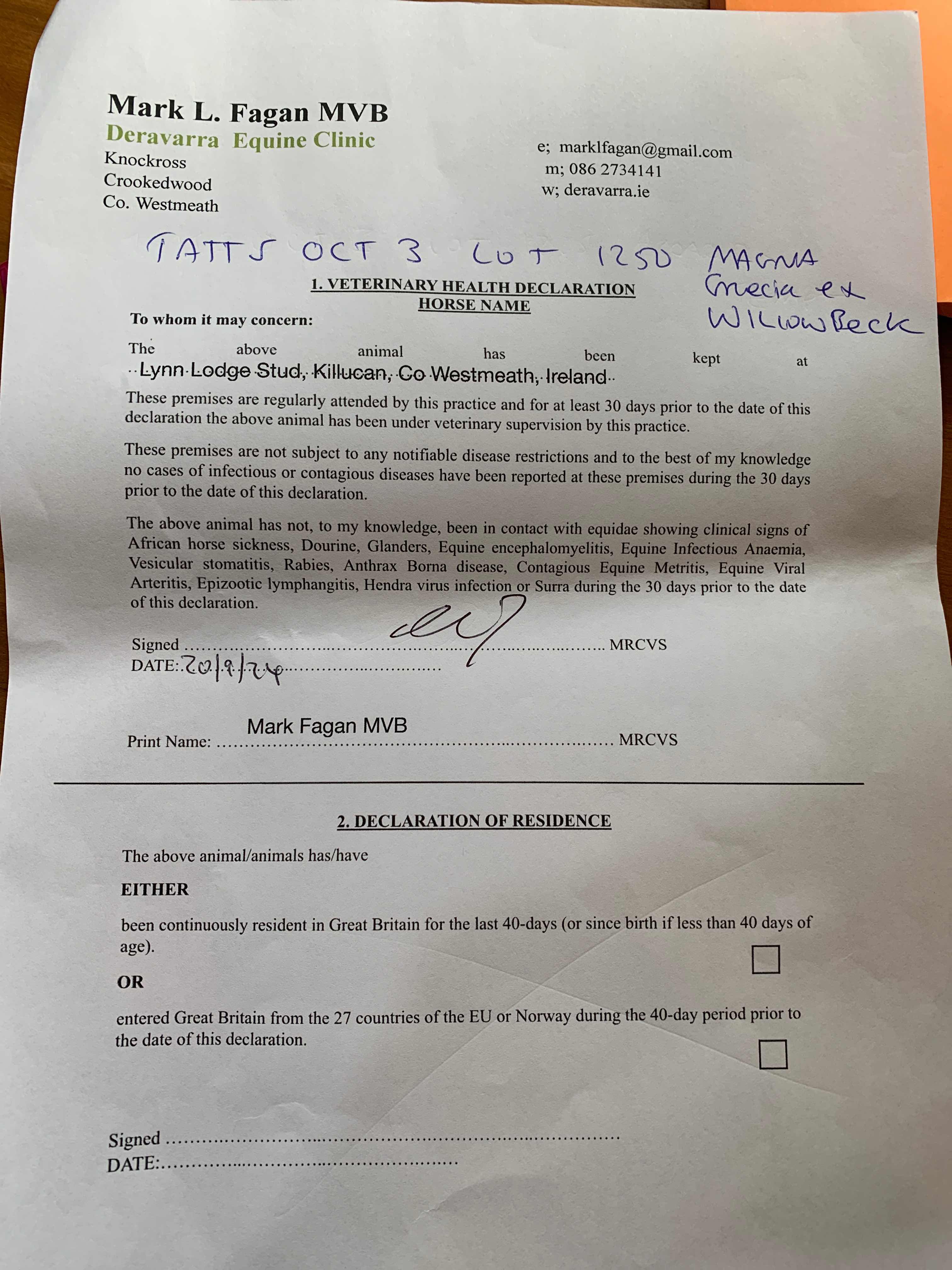 Consignor: Lynn Lodge Stud, Ireland