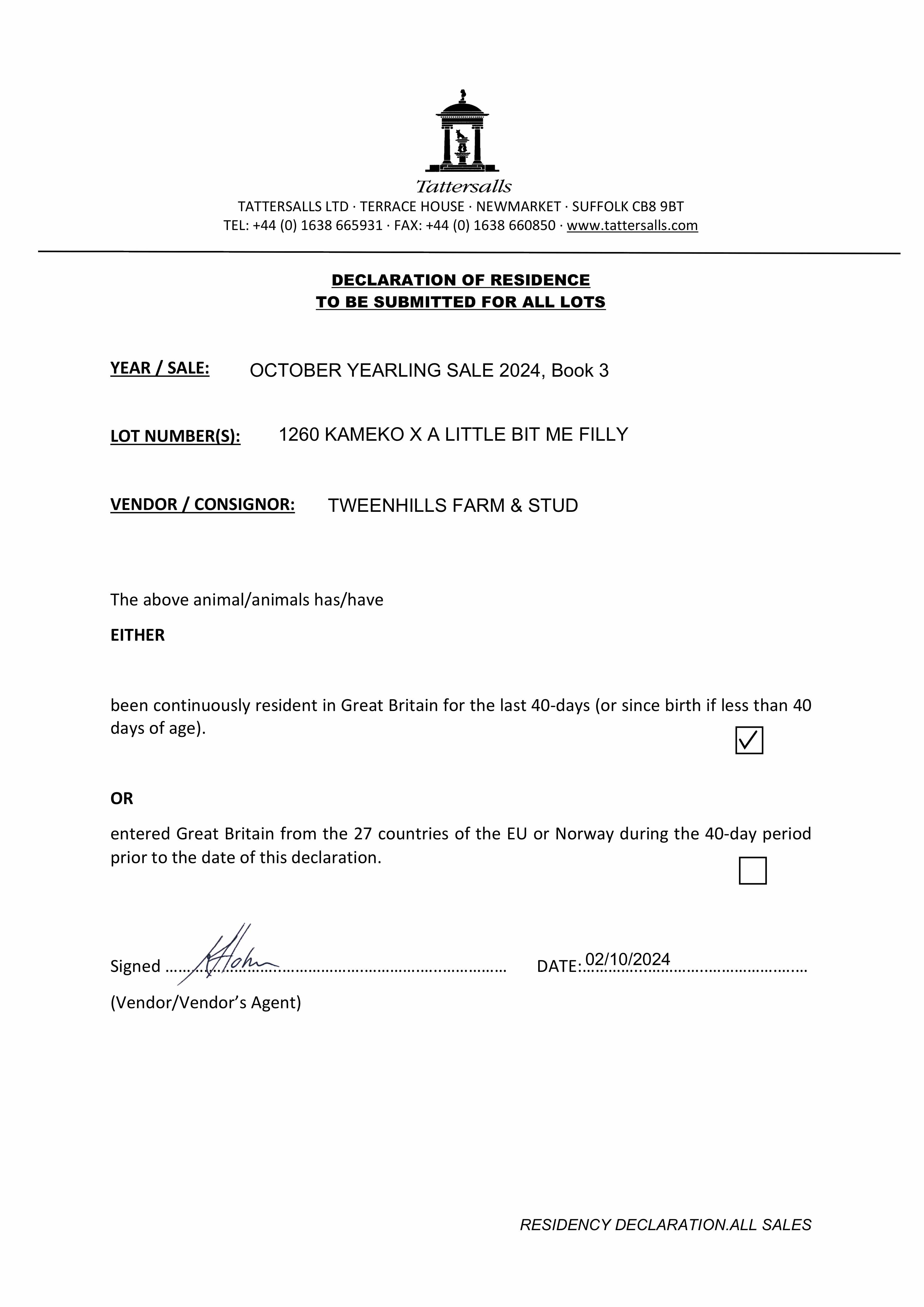 October Yearling Sale, Book 2 2022 lot 1018 F. 2021, Manister House Stud, Ireland=>Arthur Hoyeau Agent 95,000 gns