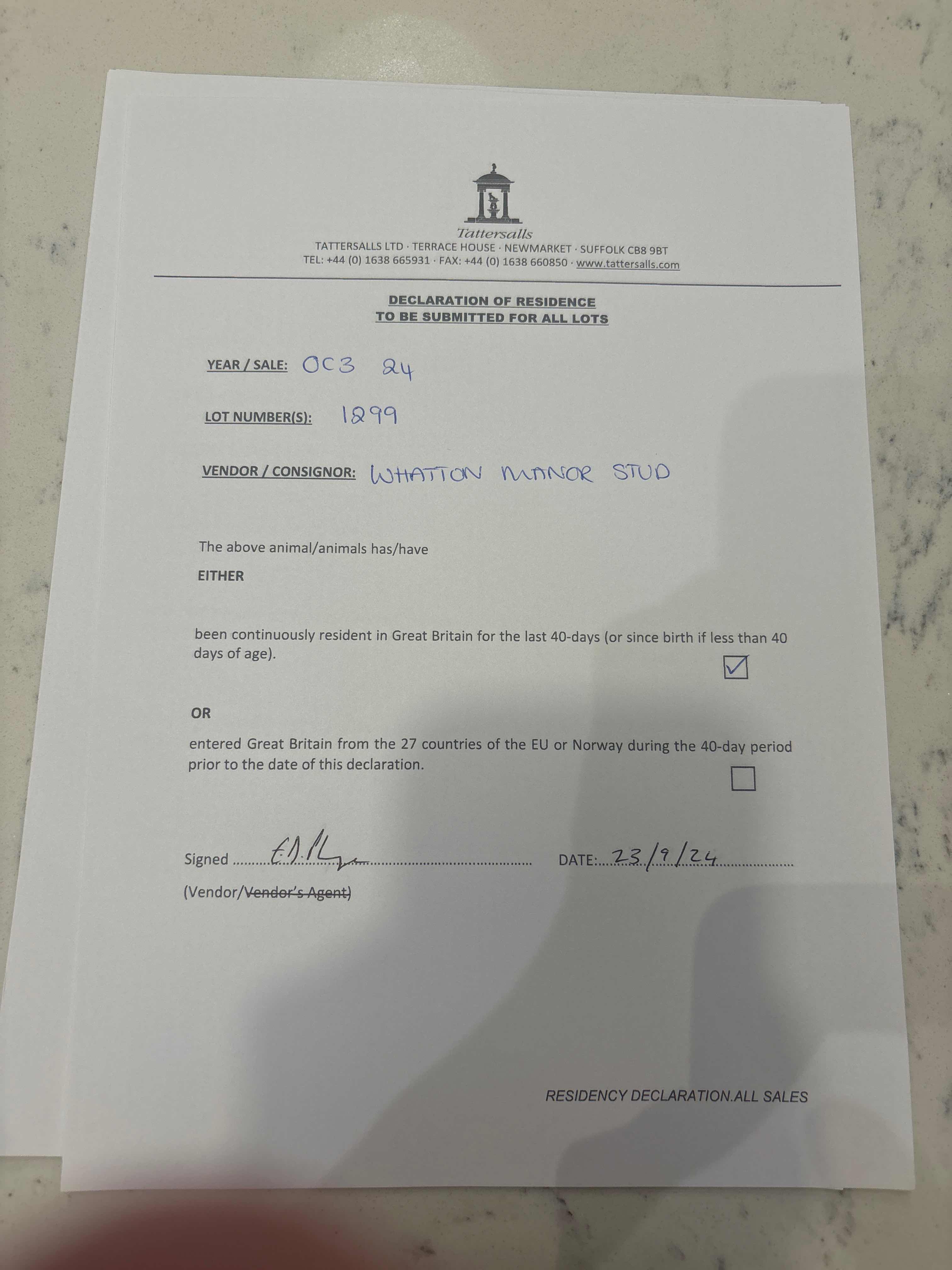 Consignor: Whatton Manor Stud