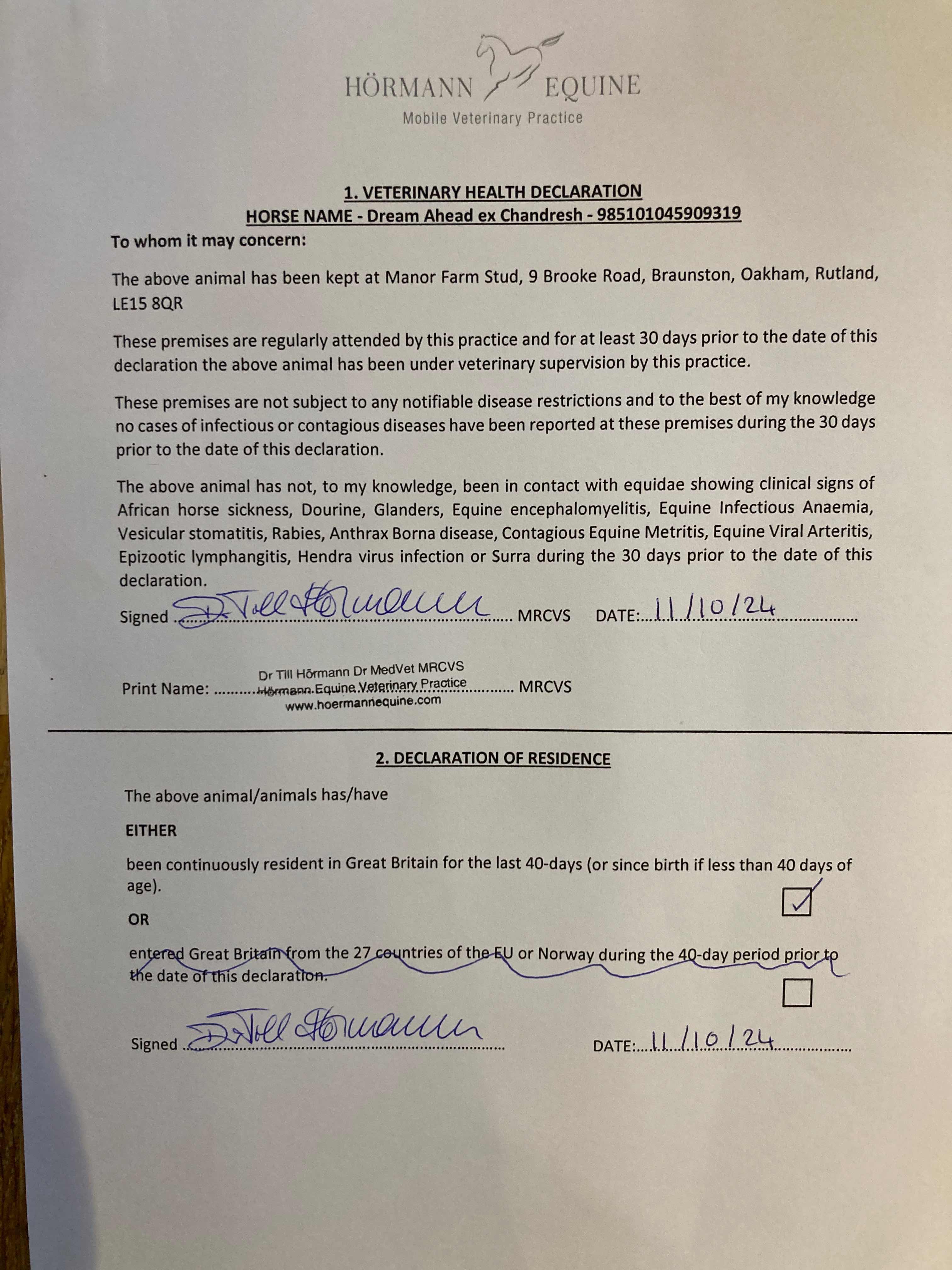 Contact: Toby Watson ✆ 07918125352 ✉ toby@manorfarmstud.com
