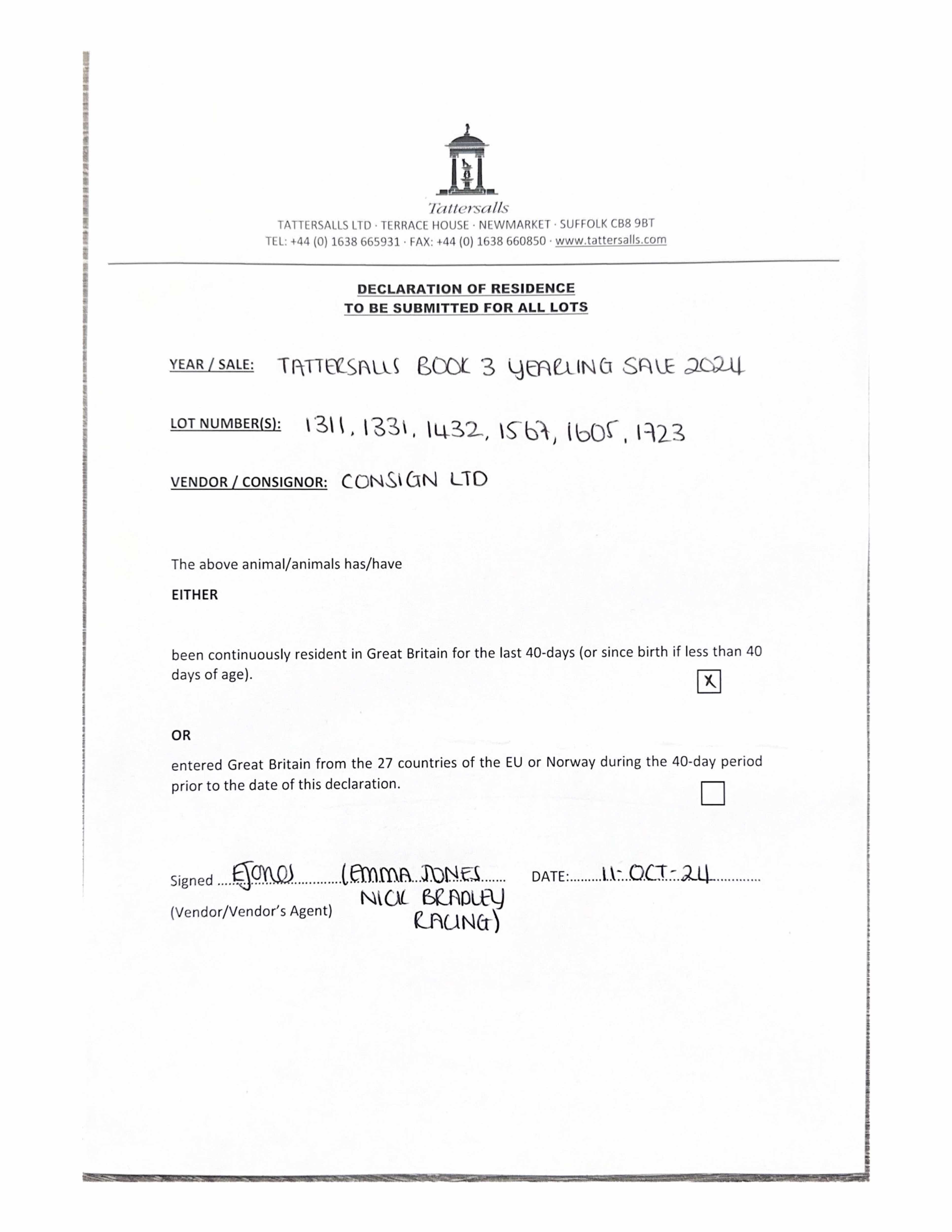 December Foal Sale 2025 lot 1063 F. by El Caballo (GB) 2025, Glebe Farm Stables=>Jacintha Hynes 7,500 gns