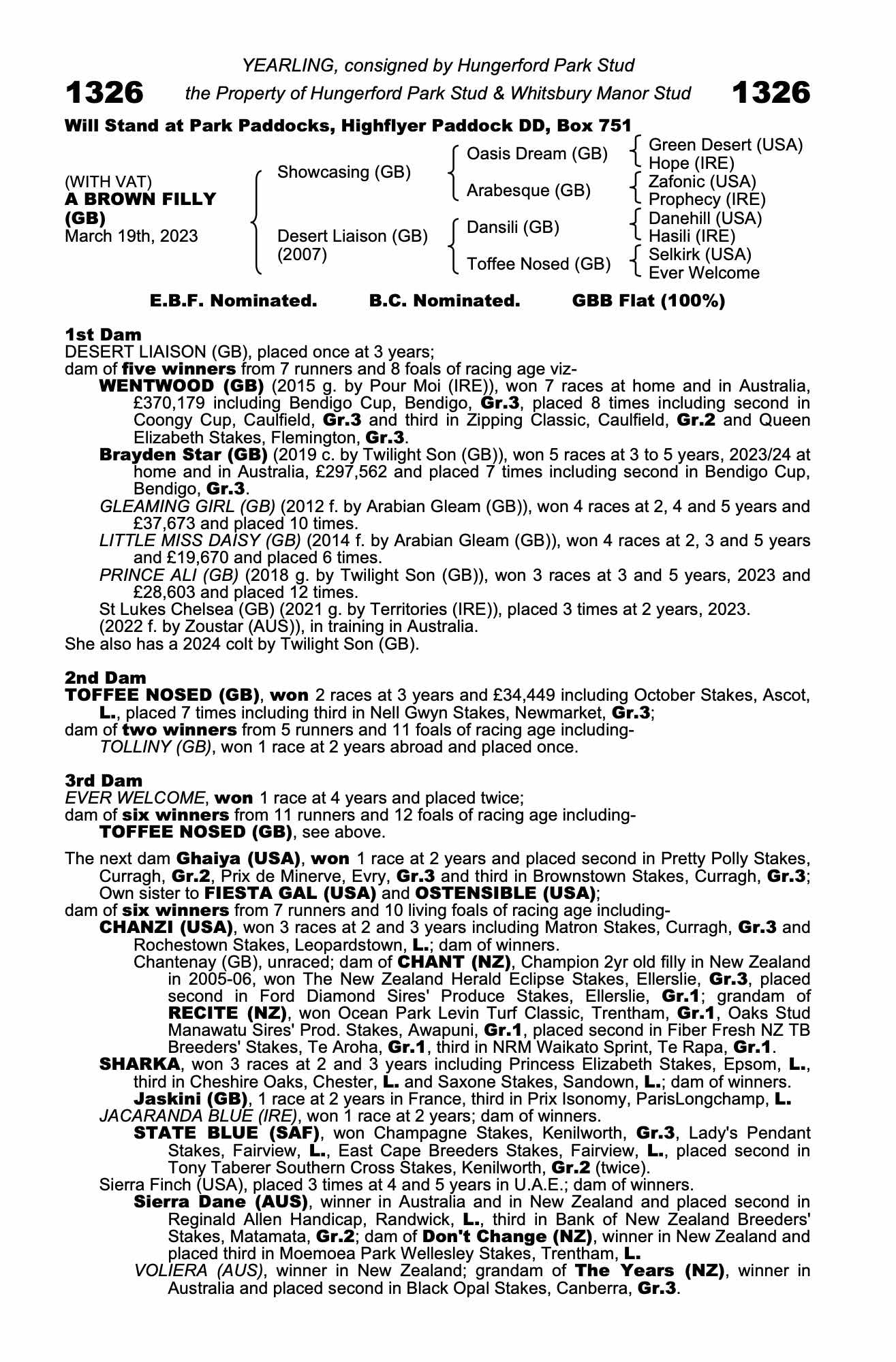 Consignor: Hungerford Park Stud