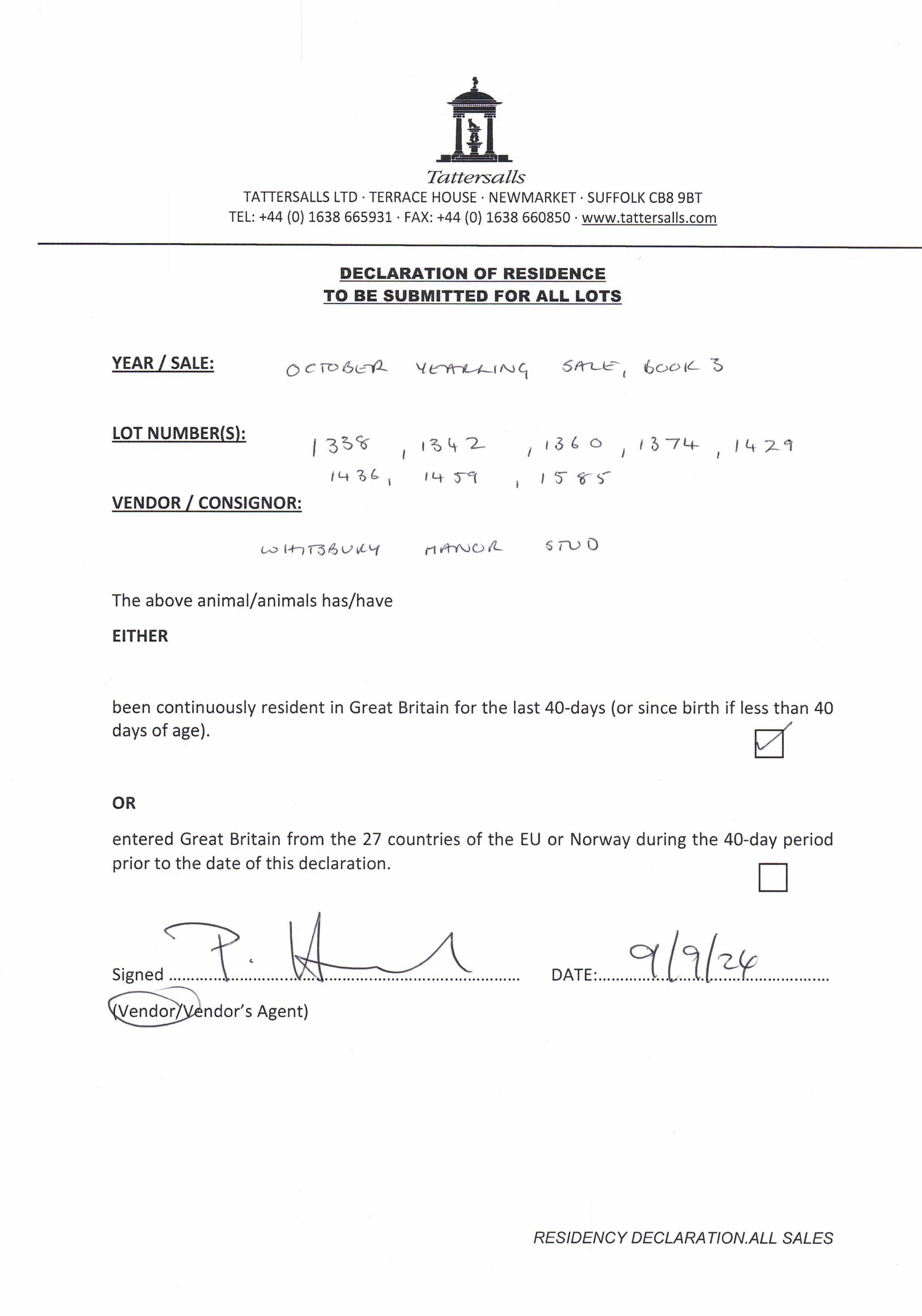 Consignor: Whitsbury Manor Stud