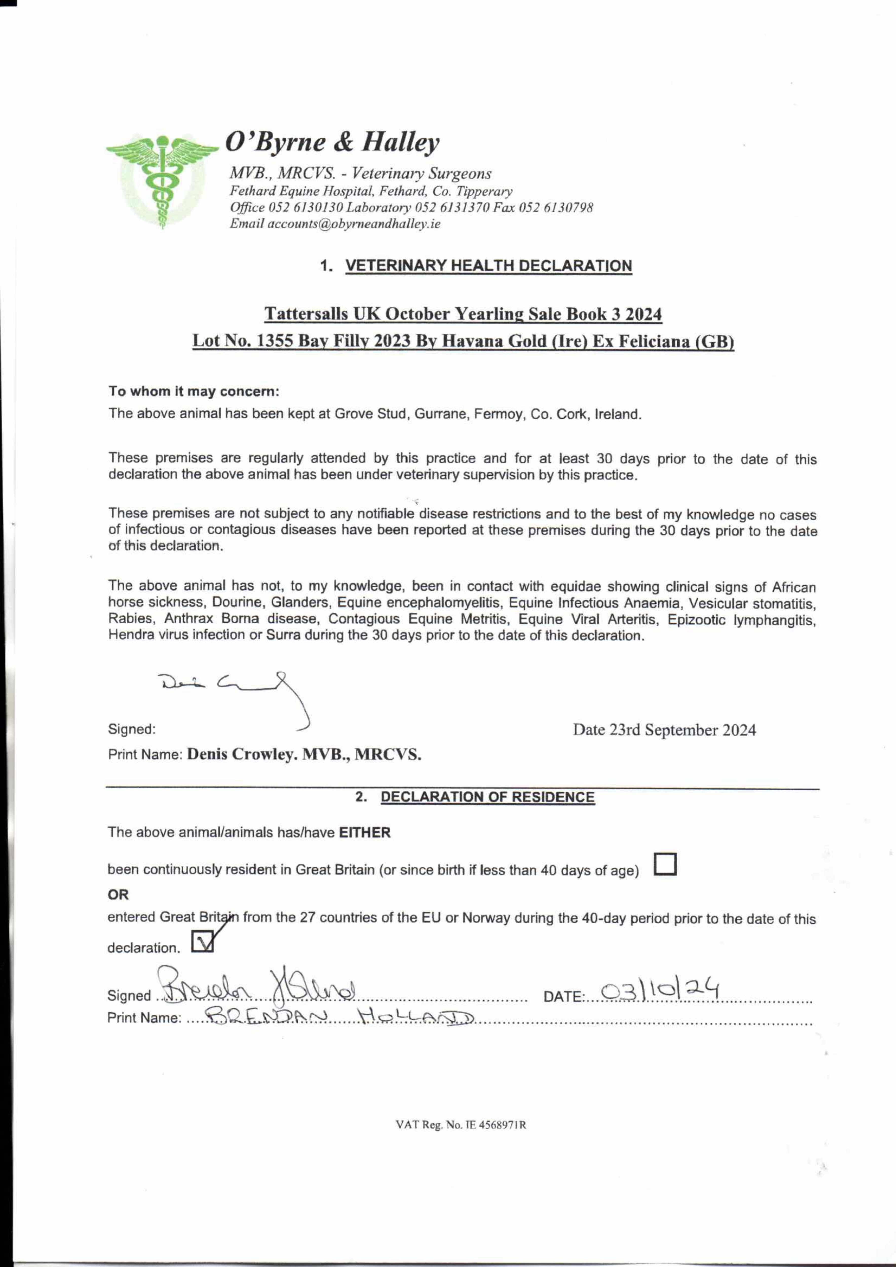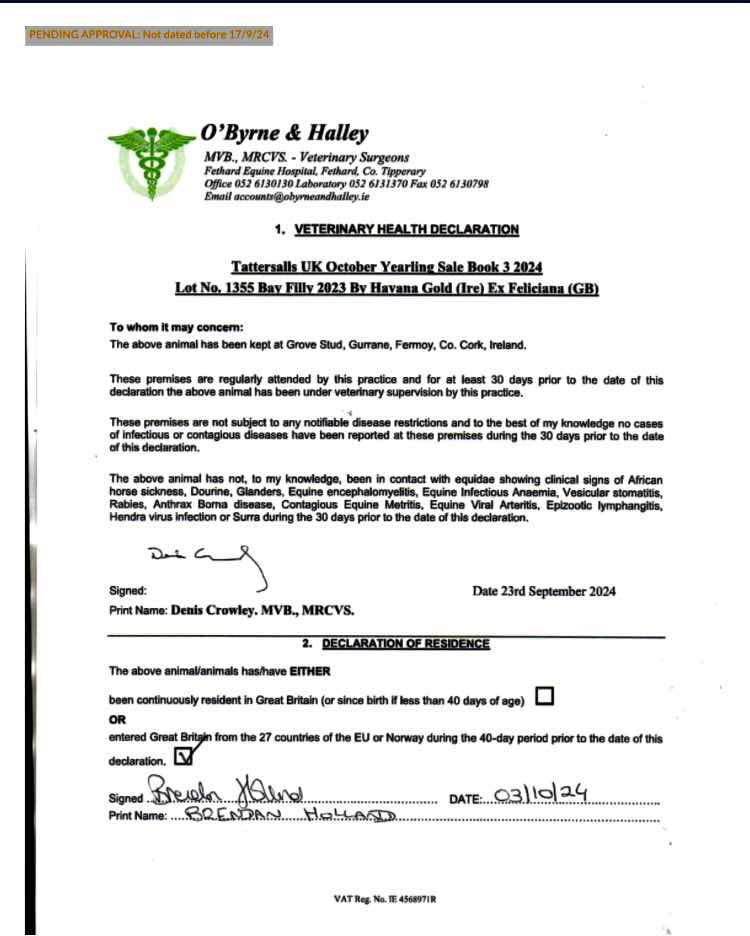 Online Sale - 15th February 2024 lot 67 F. by Land Force (IRE) 2022, WH Bloodstock=>Vendor 8,000 gns