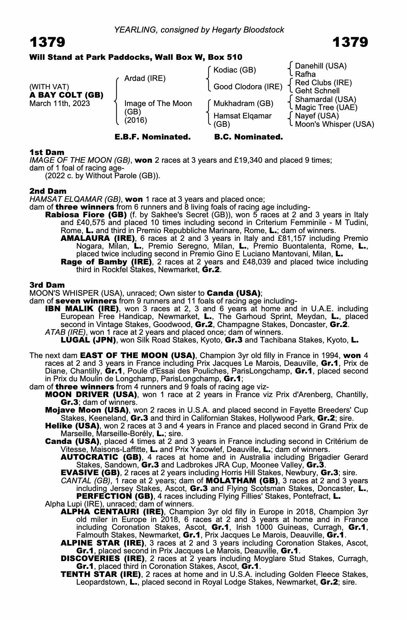 Under 2nd dam, Rabiosa Fiore (GB), dam of: RAGE OF BAMBY (IRE), 4 races at 2 and 4 years, 2024 and £131,988 including Boadicea Stakes, Newmarket, L. and second in Arran Sprint Stakes, Ayr, L.