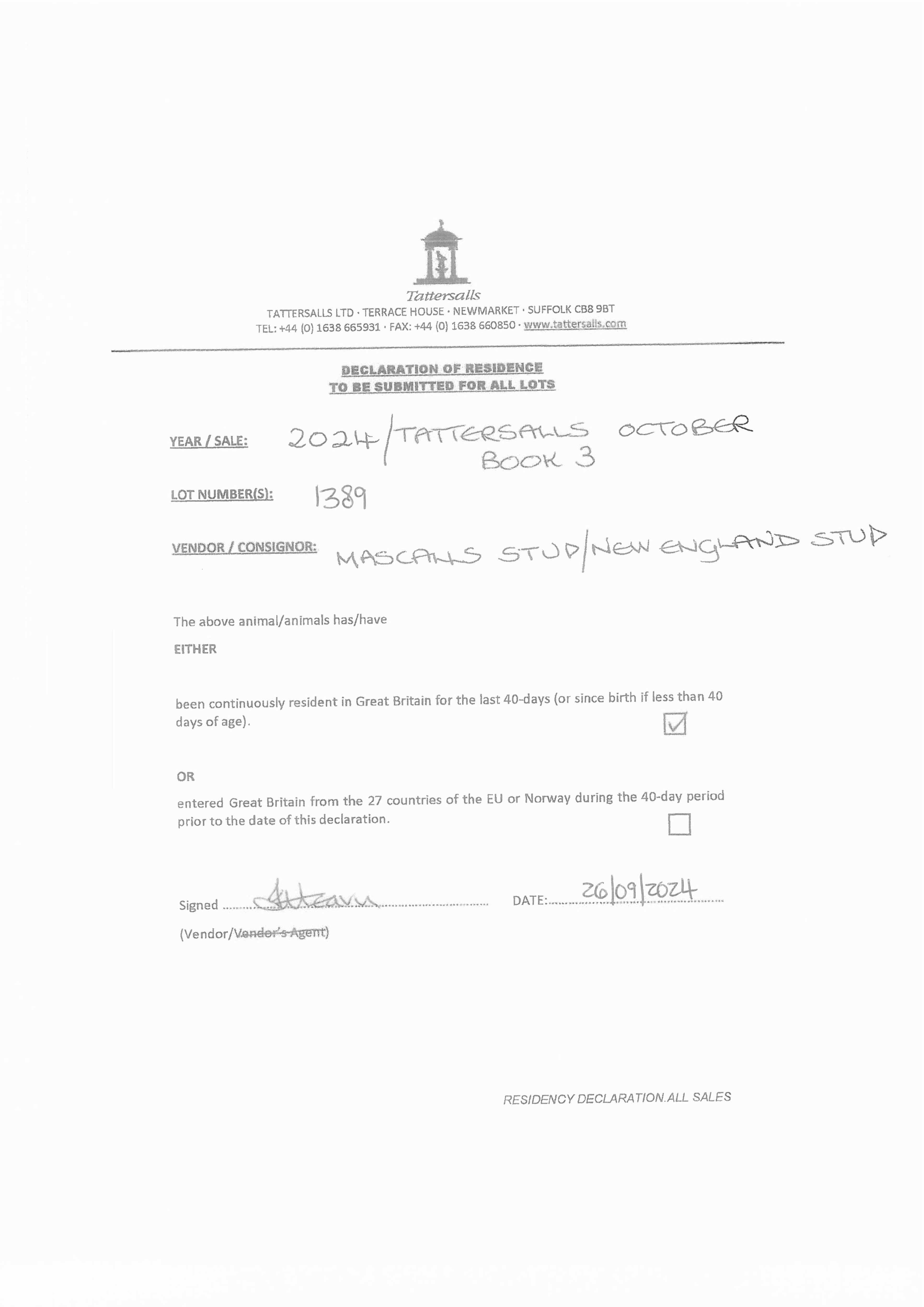Consignor: New England Stud