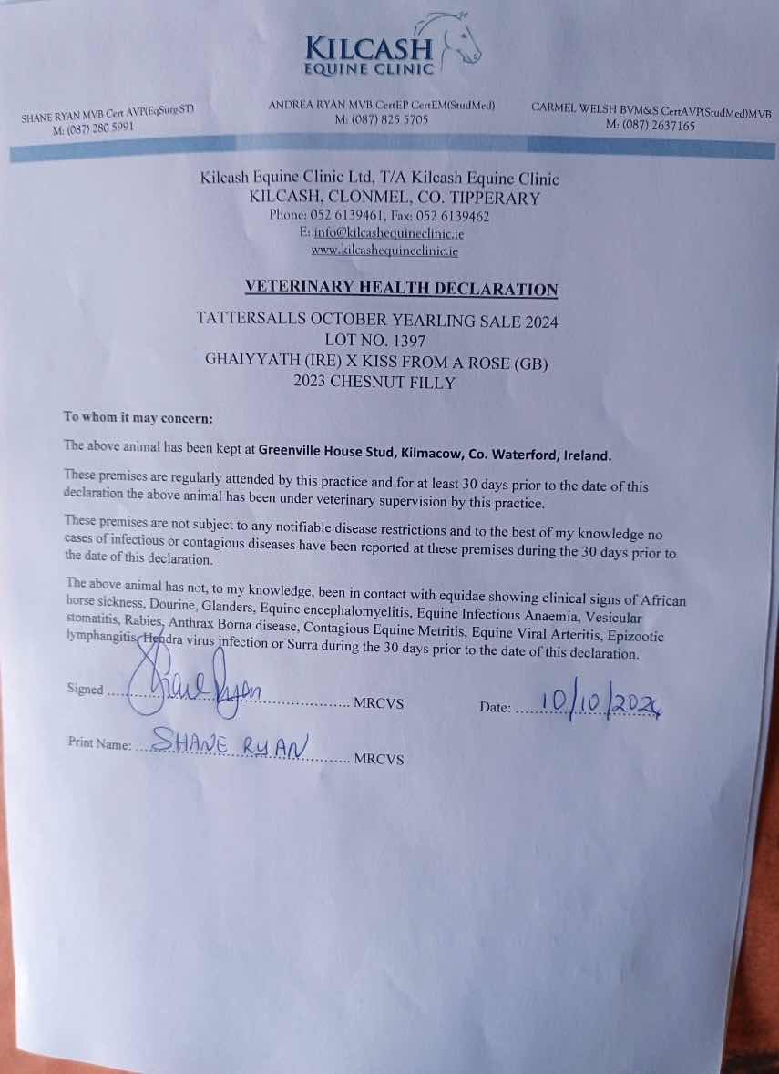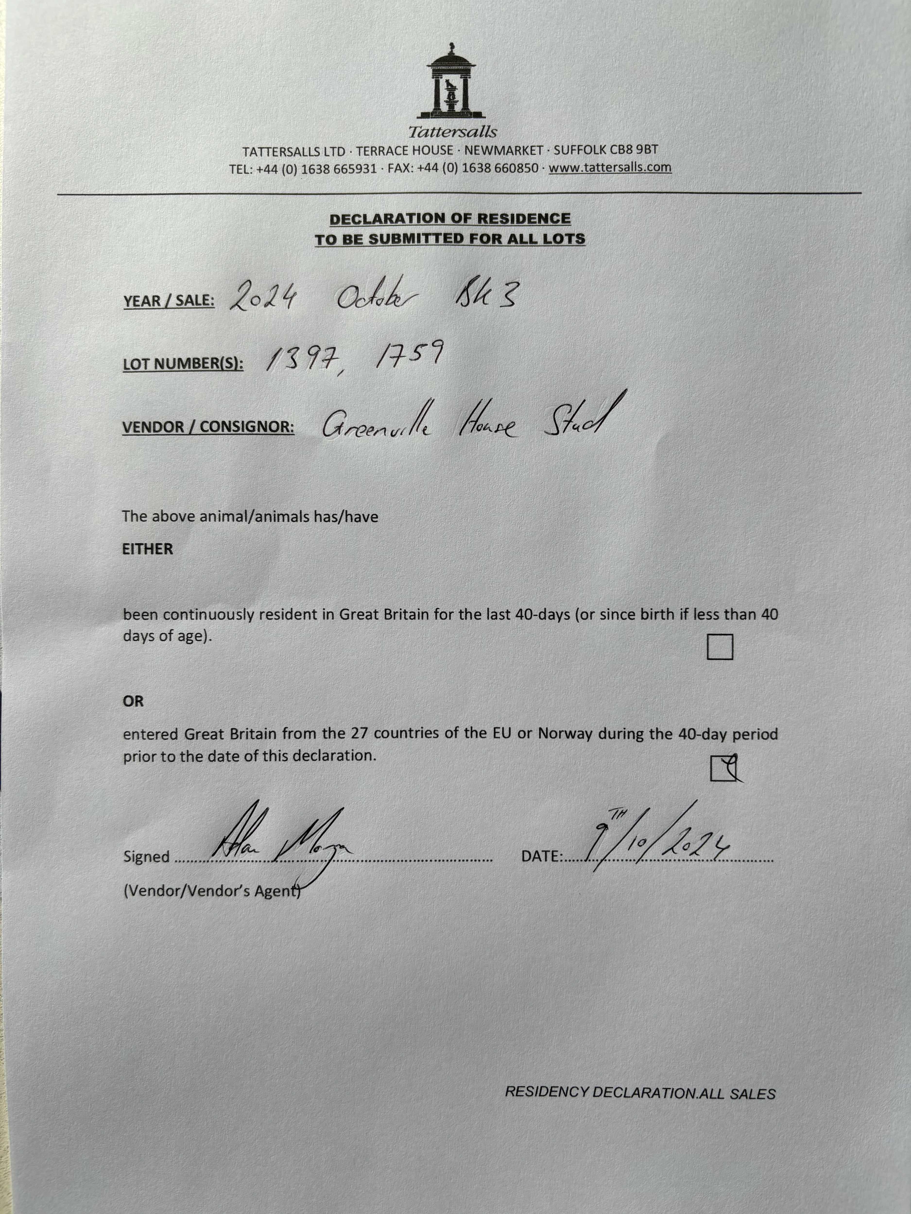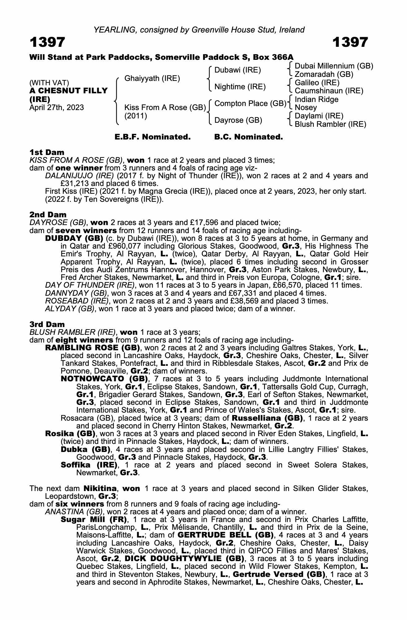 October Yearling Sale, Book 2 2023 lot 1213 F. by Ten Sovereigns (IRE) 2022, Greenville House Stud, Ireland=>Najd Stud 42,000 gns