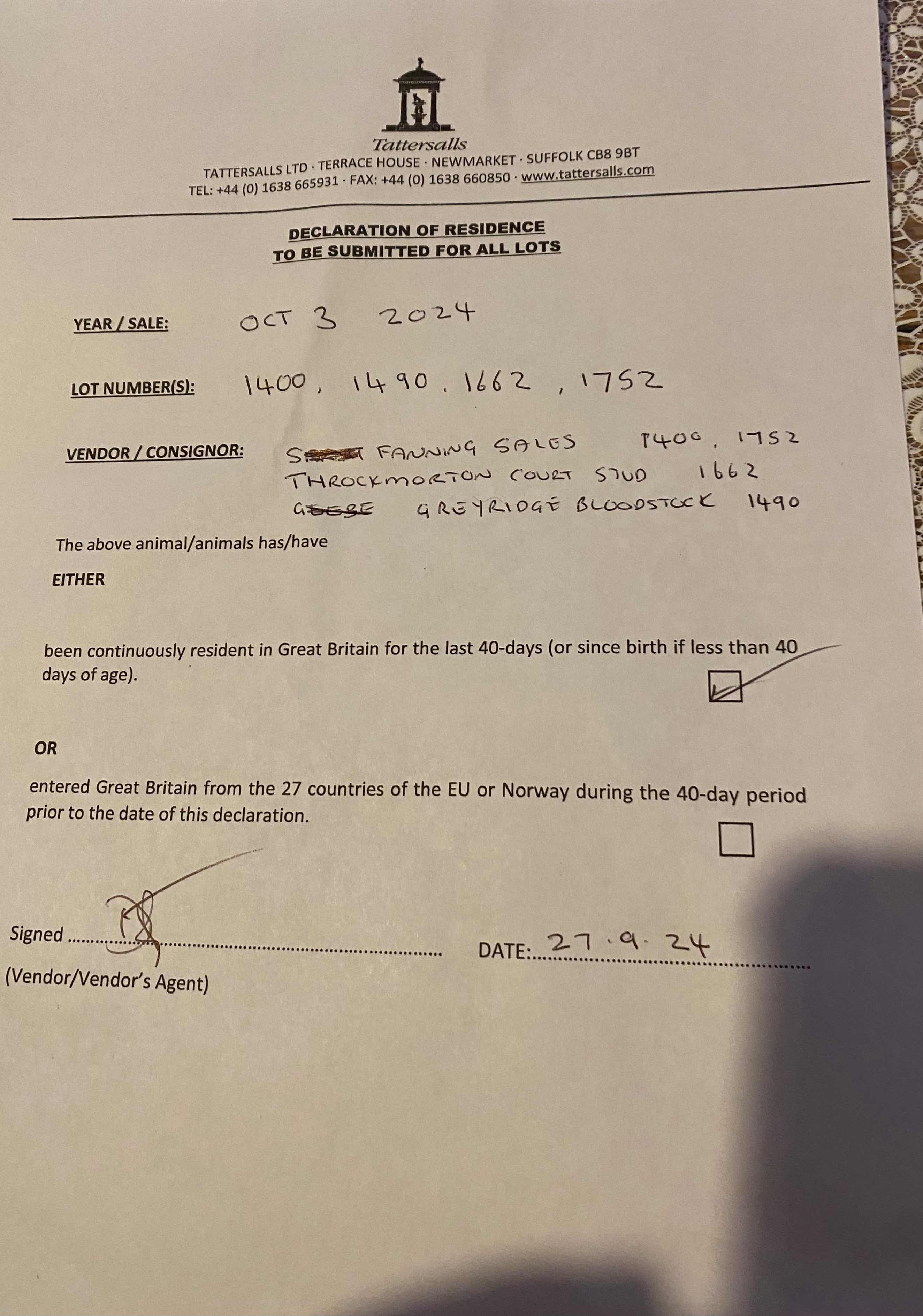 Consignor: S Fanning Sales