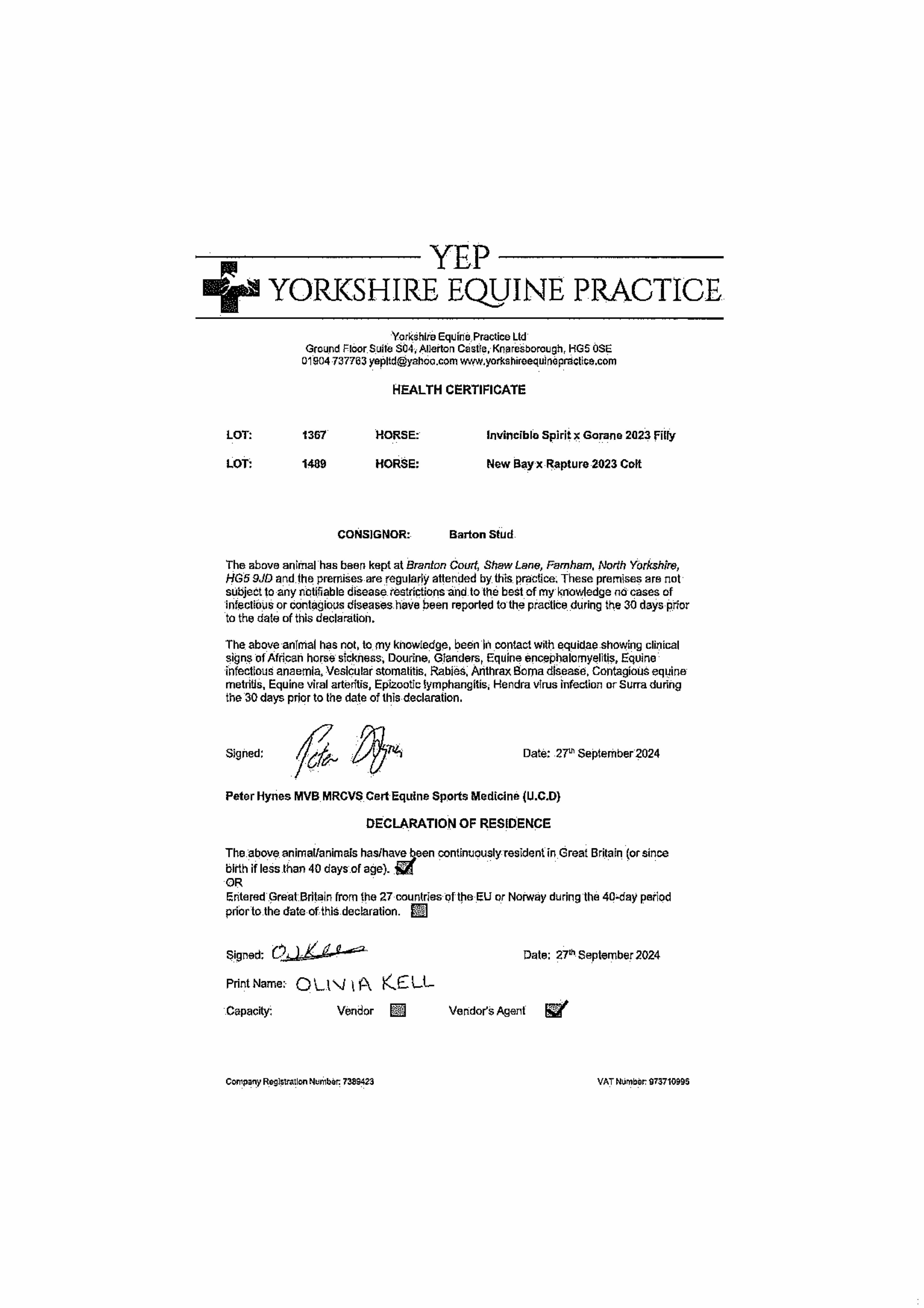 October Yearling Sale, Book 3 2025 lot 1842 F. by Mohaather (GB) 2024, Consign Ltd.=>Gary Downie 1,500 gns