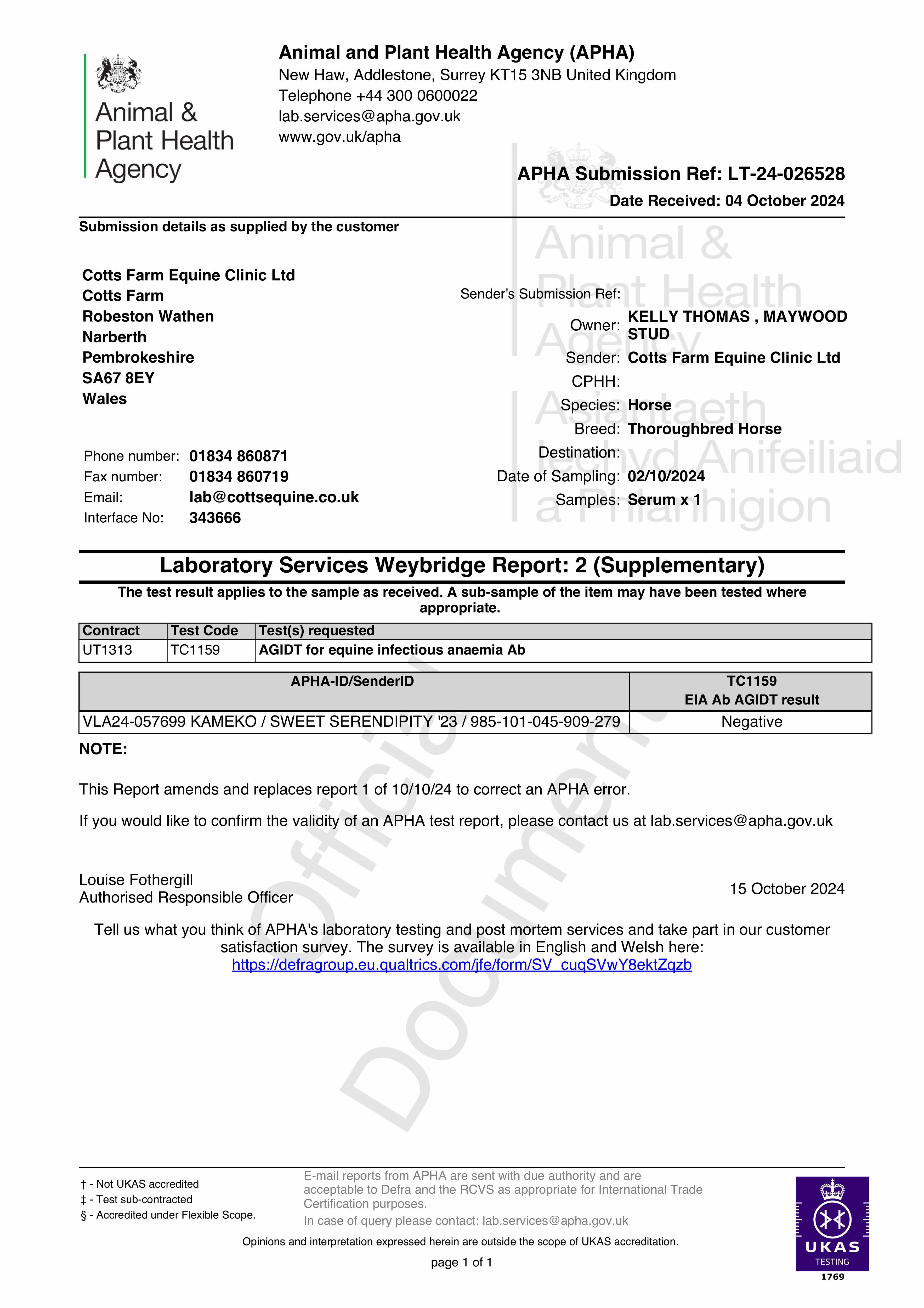 Kameko (USA) / Sweet Serendipity (GB) Ch.C. (GB)