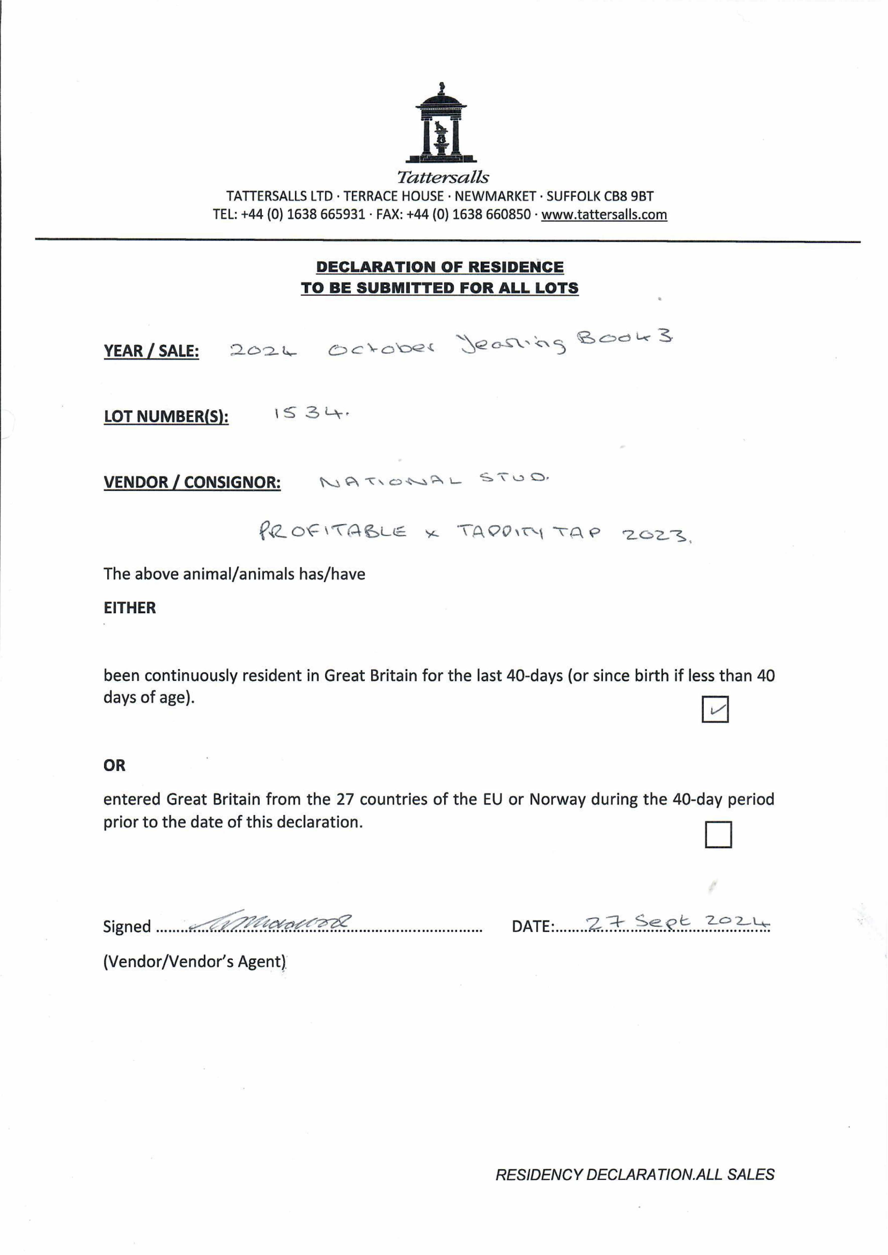 Consignor: The National Stud Ltd.