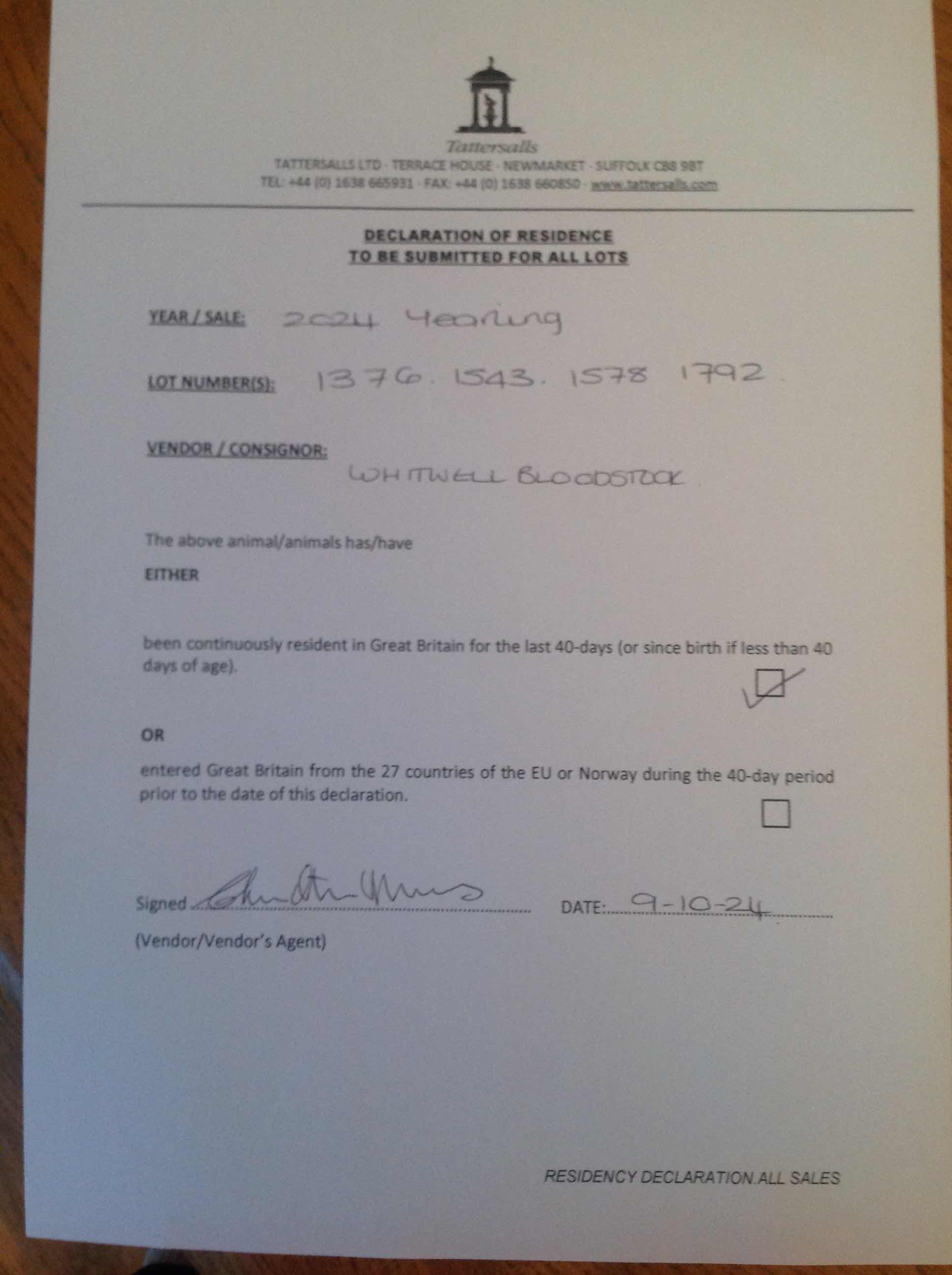 Consignor: Whitwell Bloodstock