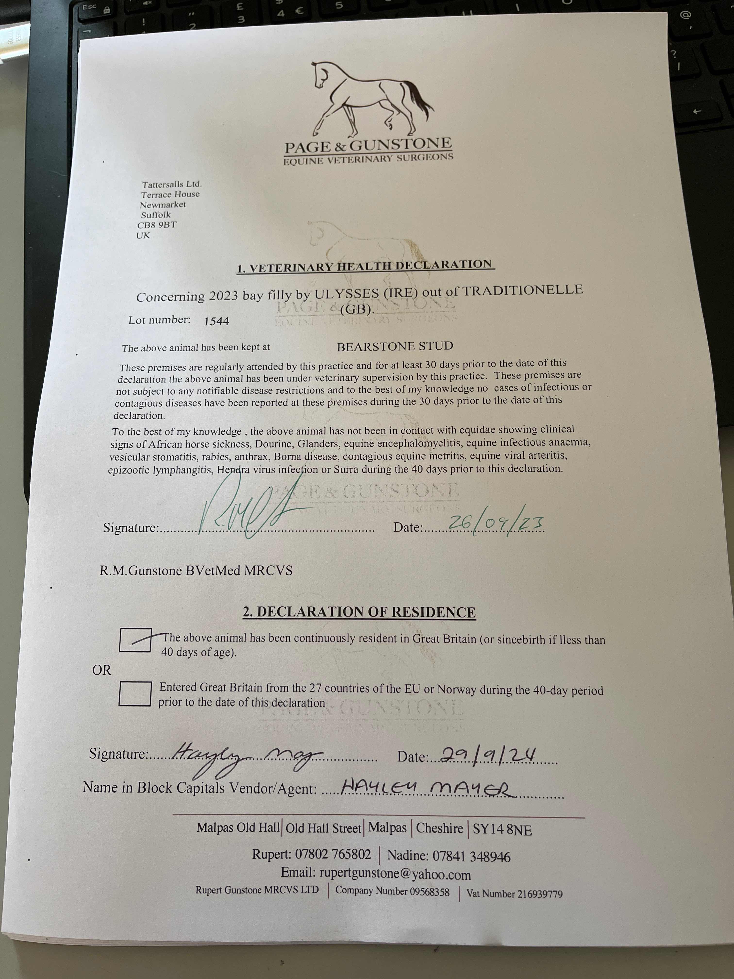 Consignor: Bearstone Stud