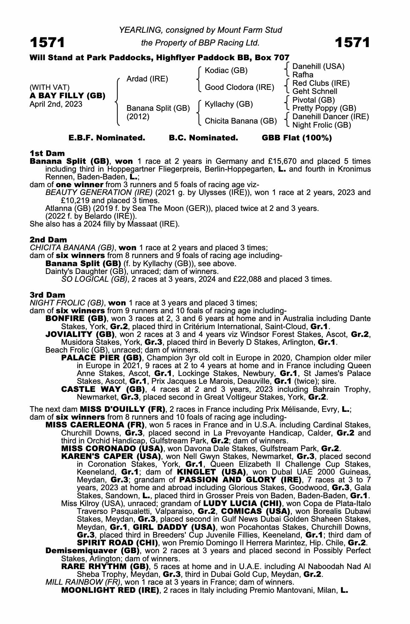 Consignor: Mount Farm Stud