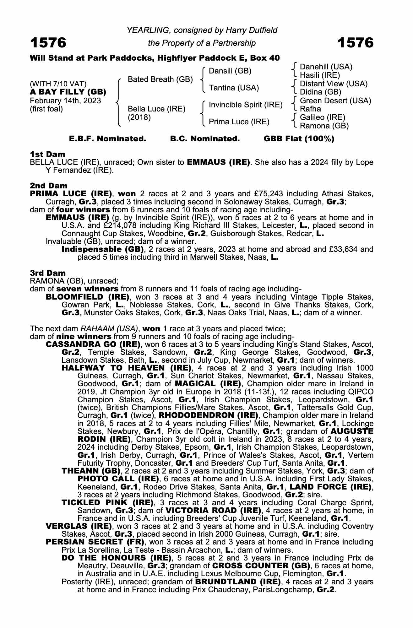 Lot 1576 Bated Breath (GB) /Bella Luce (IRE) B.F. (GB)
