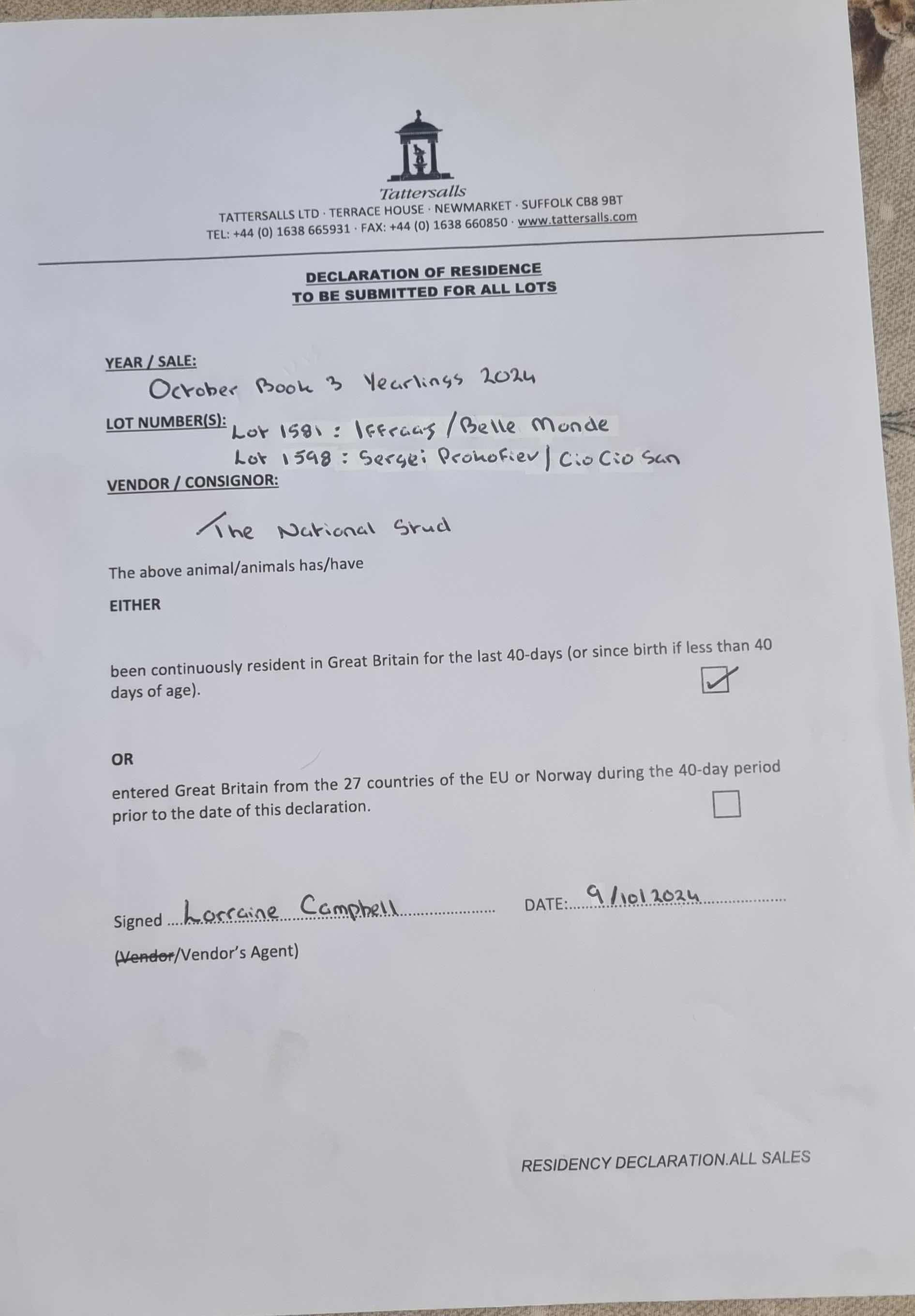 December Foal Sale 2025 lot 1121 F. by Sergei Prokofiev (CAN) 2025, The National Stud Ltd.=>Lot Not Sold 4,500 gns