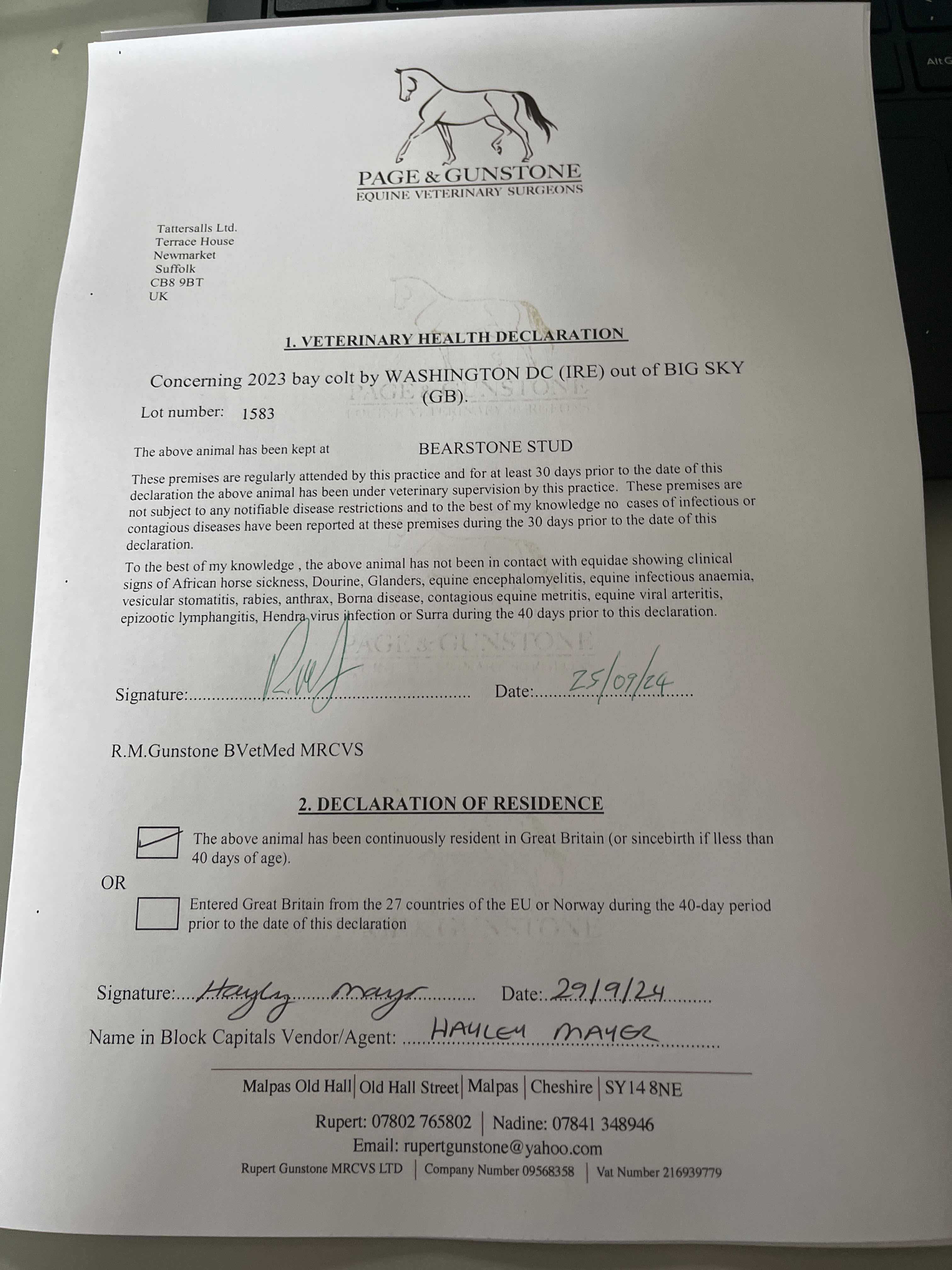 Consignor: Bearstone Stud