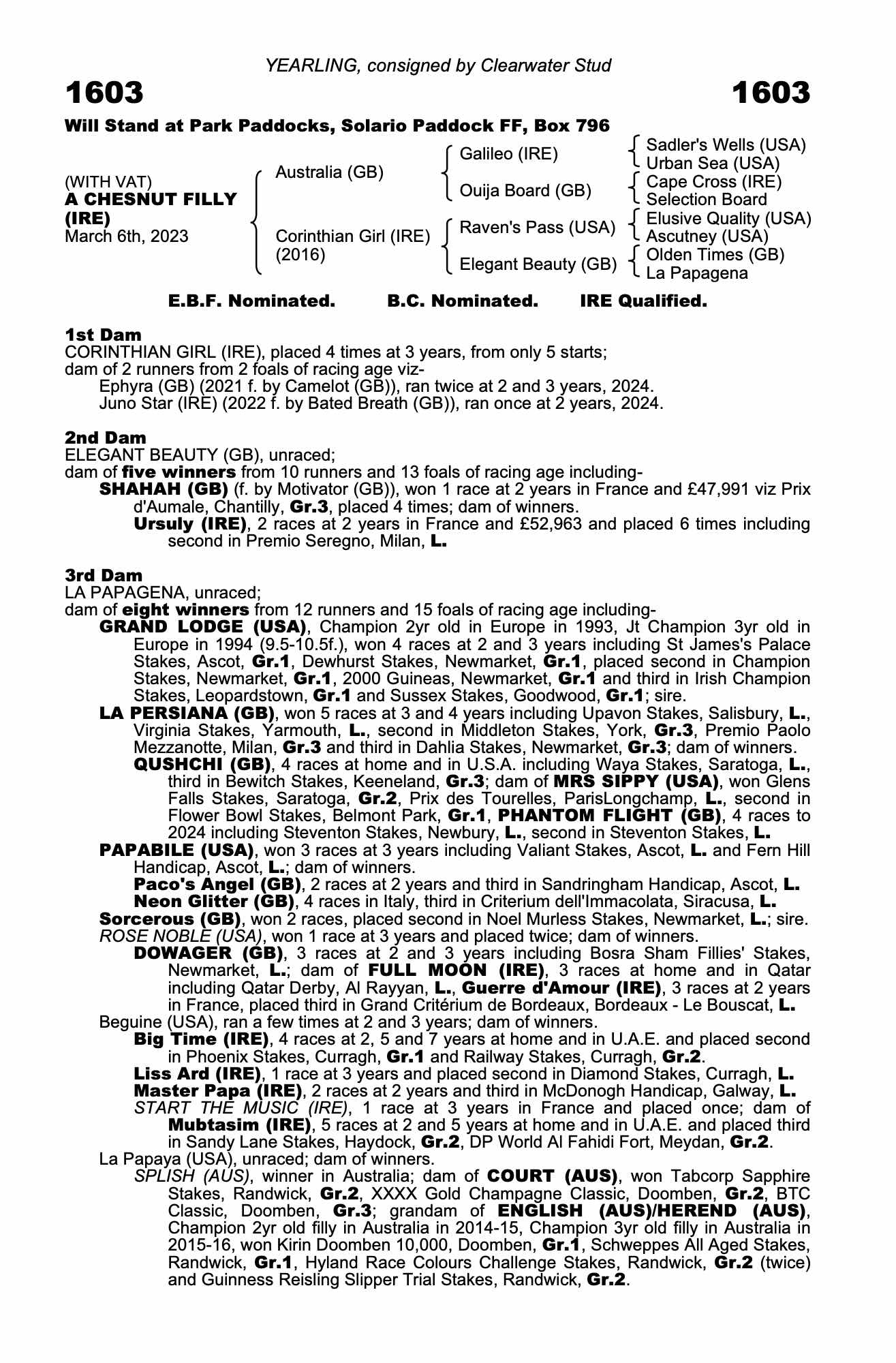 Online Sale - 12th February 2025 lot 14 Ephyra (GB) (F. by Camelot (GB)), Shinco Racing Ltd. (D. Menuisier)=>Andy Irvine 6,500 gns