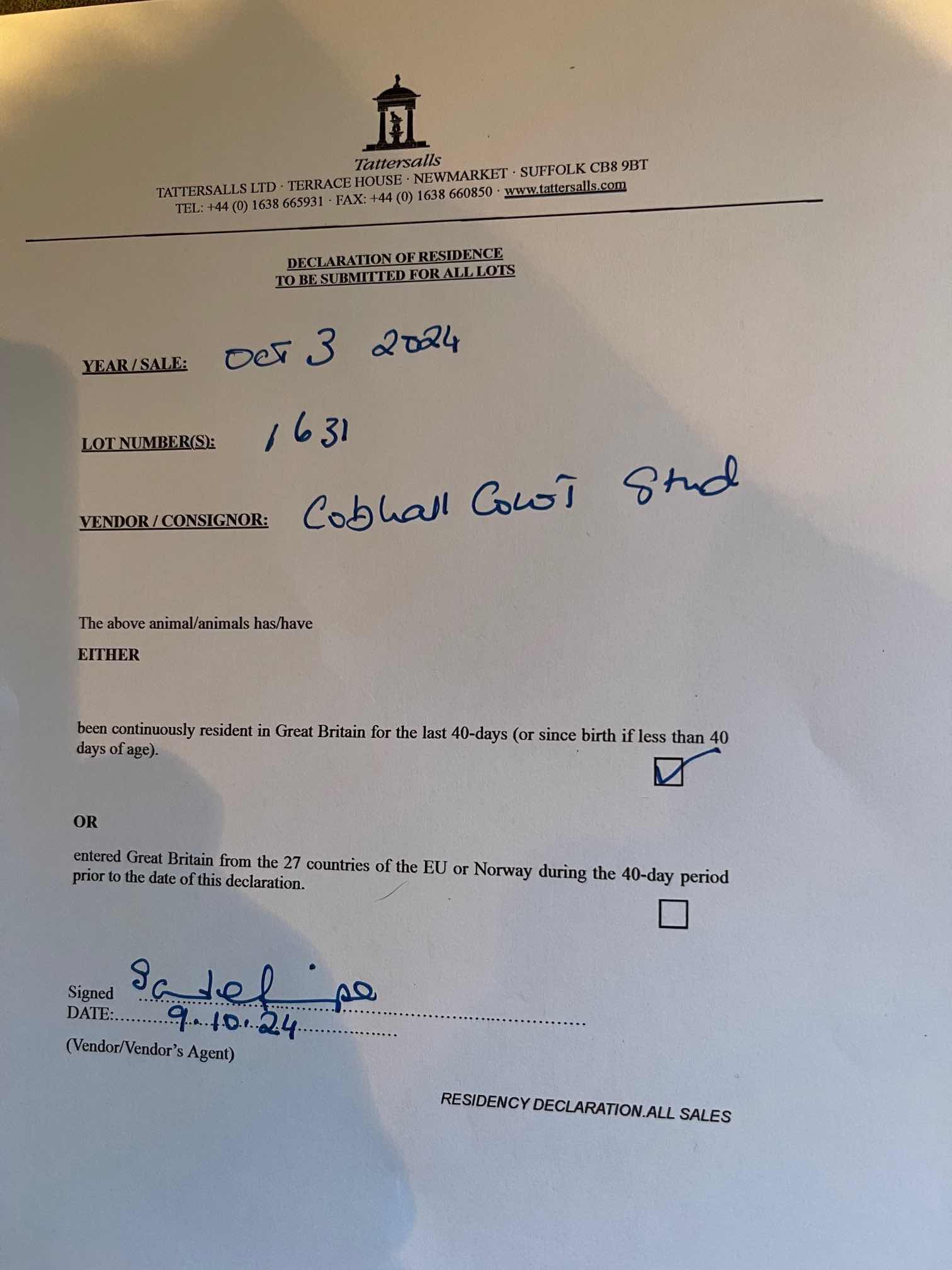 December Foal Sale 2024 lot 398 C. by Caturra (IRE) 2024, Cobhall Court Stud=>Lot Not Sold