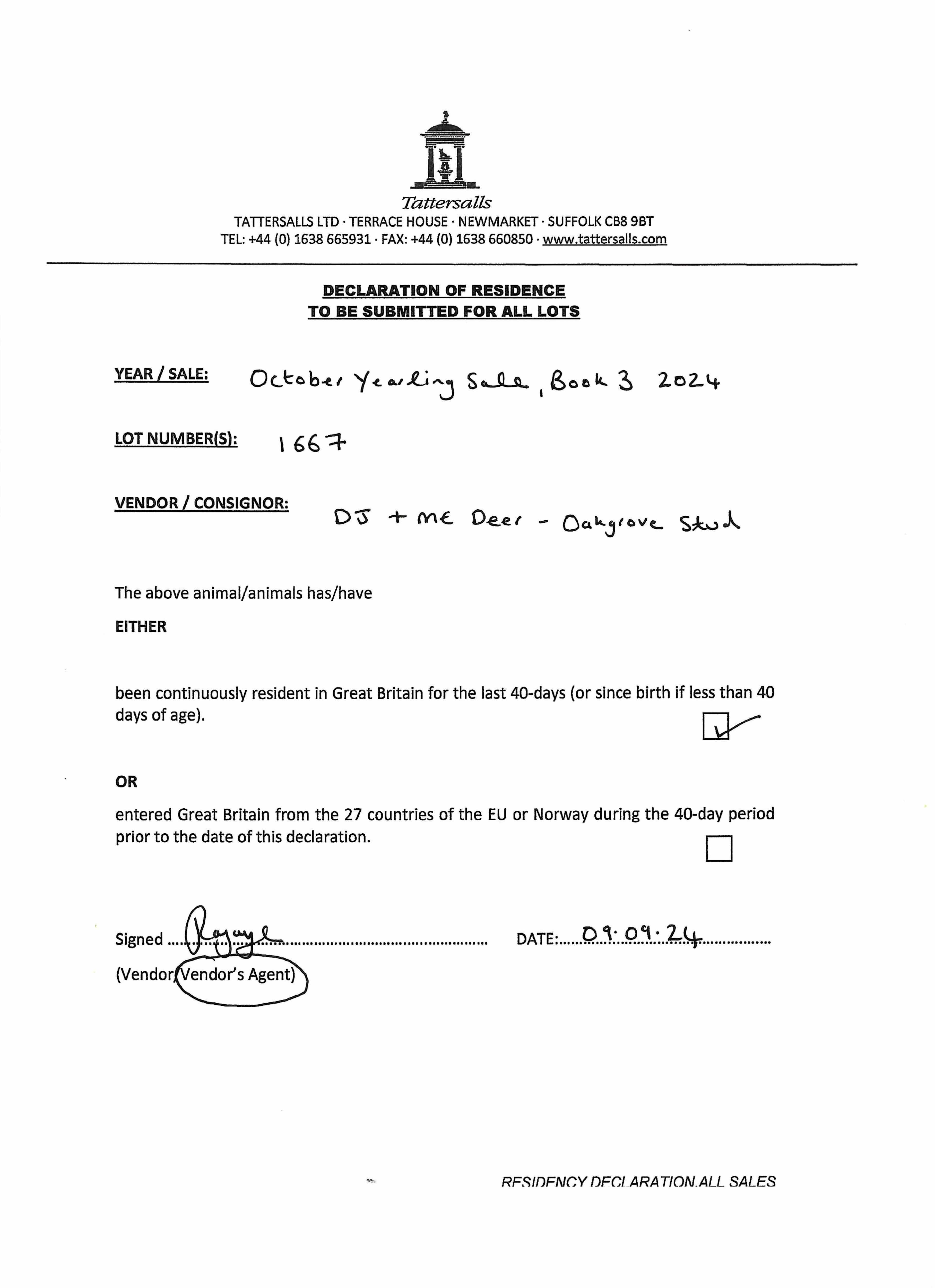 Consignor: Oakgrove Stud