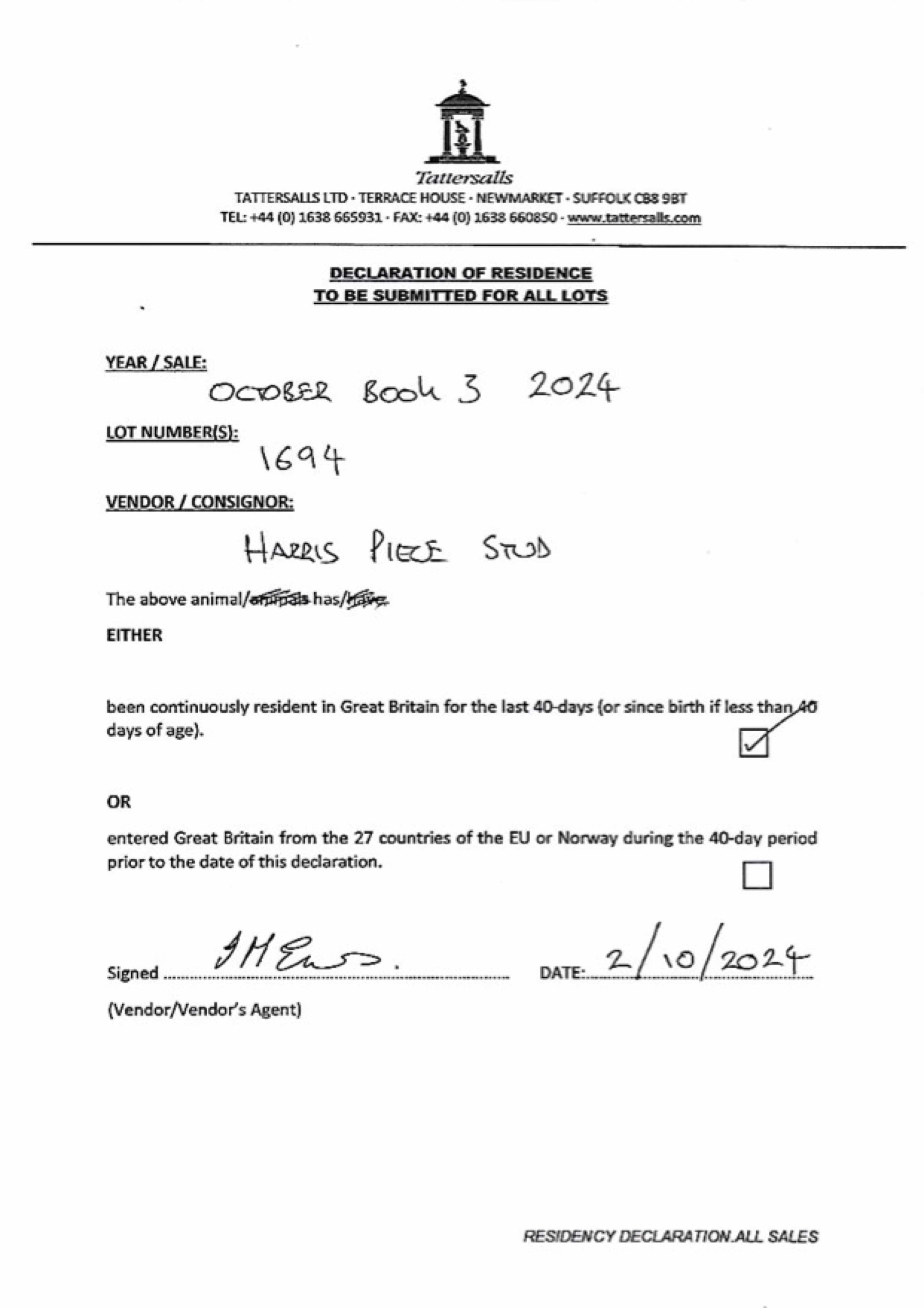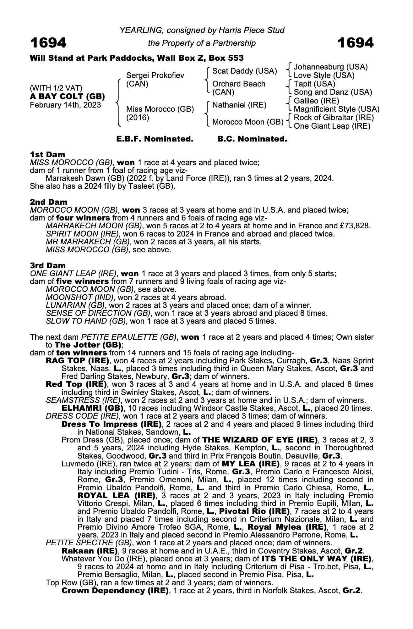 December Foal Sale 2023 lot 760, Harris Piece Stud=>Lot Not Sold