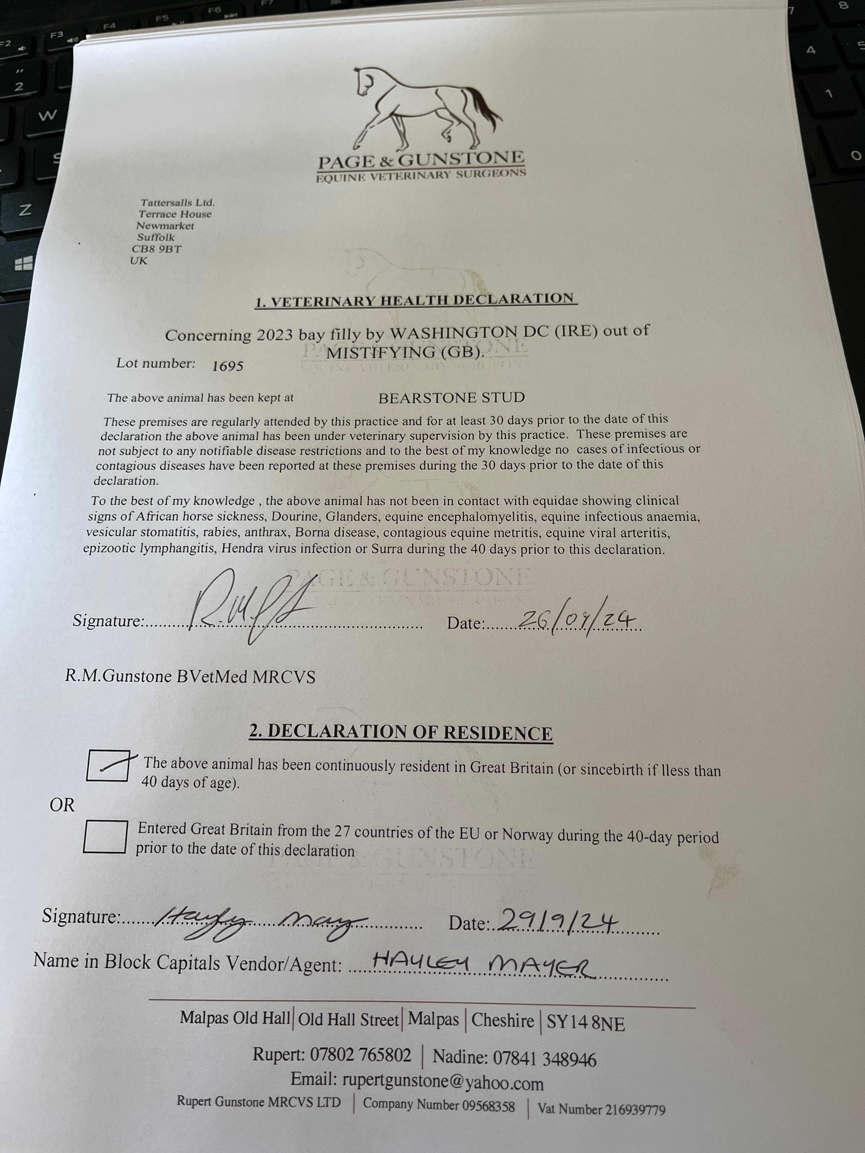 Consignor: Bearstone Stud