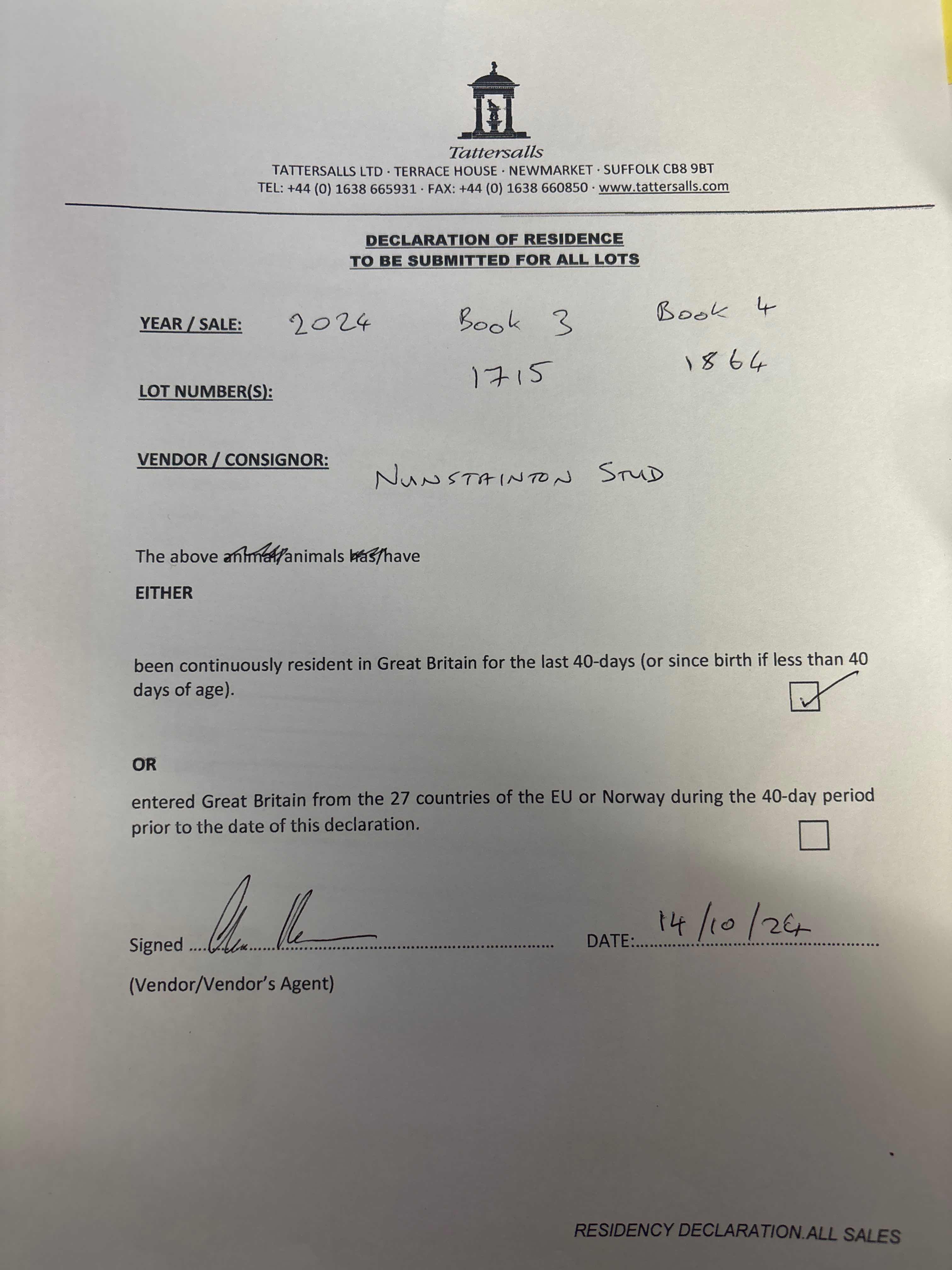 Consignor: Nunstainton Stud