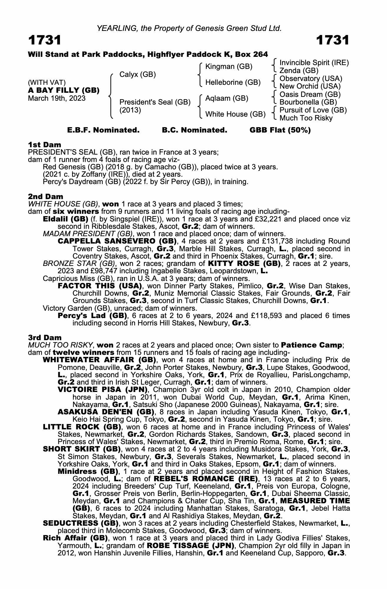 October Yearling Sale, Book 3 2023 lot 1705 F. by Sir Percy (GB) 2022, Genesis Green Stud Ltd.=>Lillingston Bloodstock 21,000 gns