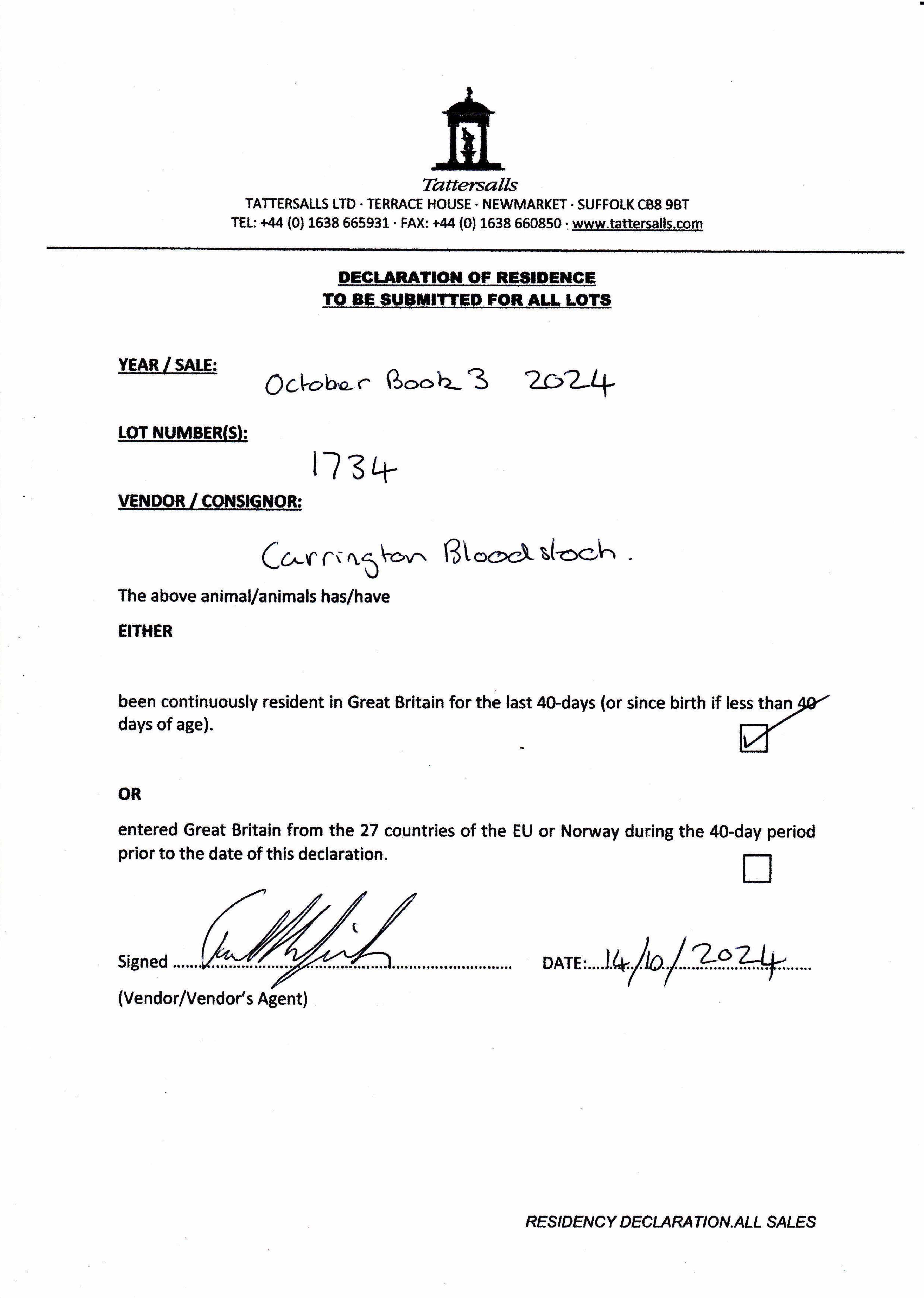 Contact: Carrington Bloodstock ✆ 07885723759 ✉ carringtonbloodstock@gmail.com