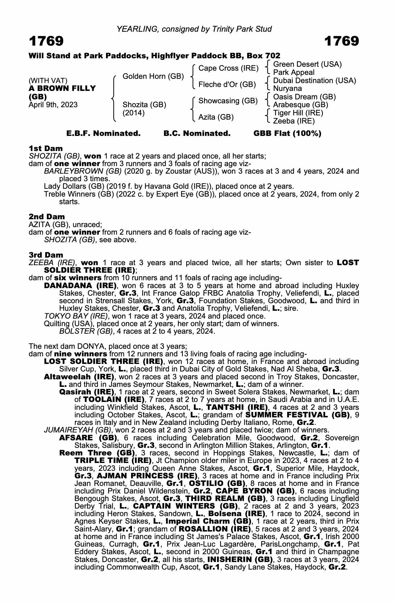 Online Sale - 23rd October 2025 lot 94 Treble Winners (GB) (G. by Expert Eye (GB)), Cornborough Manor Stables (M. Walford)=>Lot Not Sold 900 gns