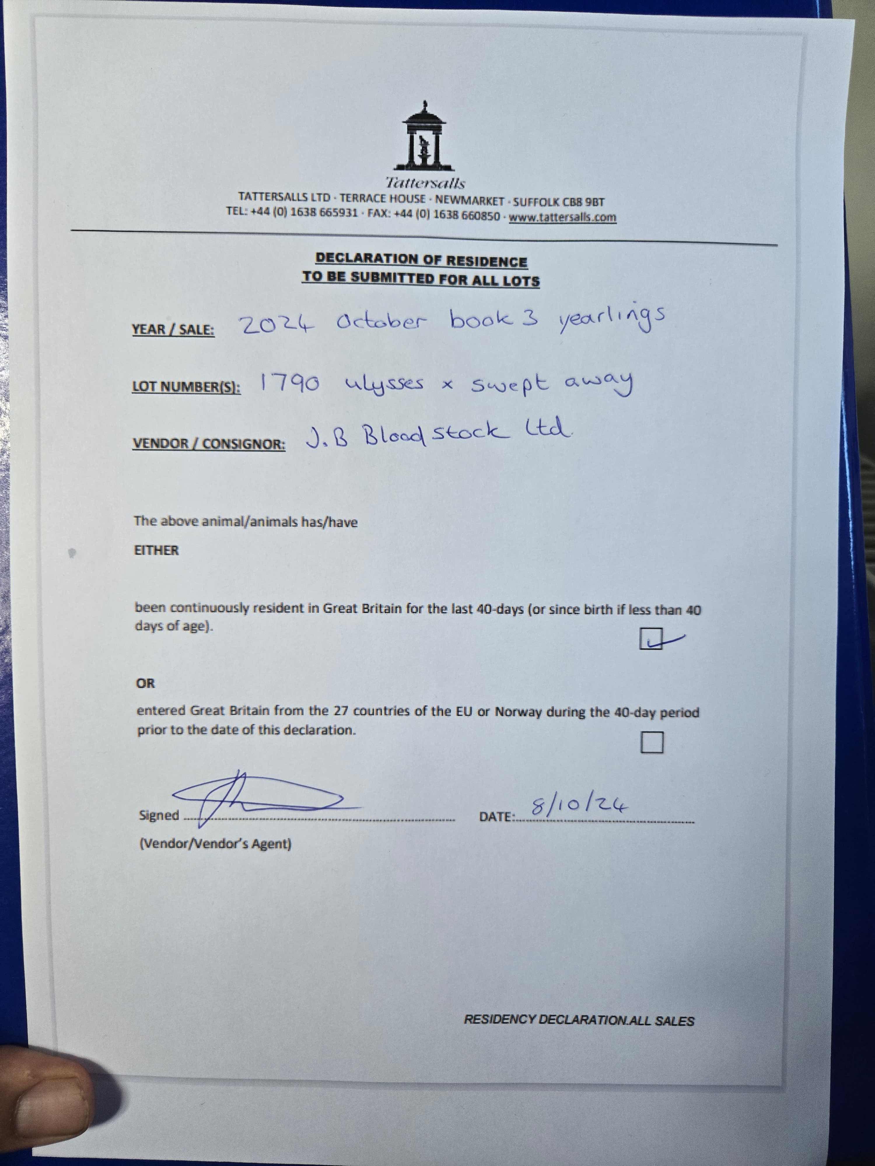 December Foal Sale 2023 lot 1225, Jamie Railton (Agent)=>Lot Not Sold