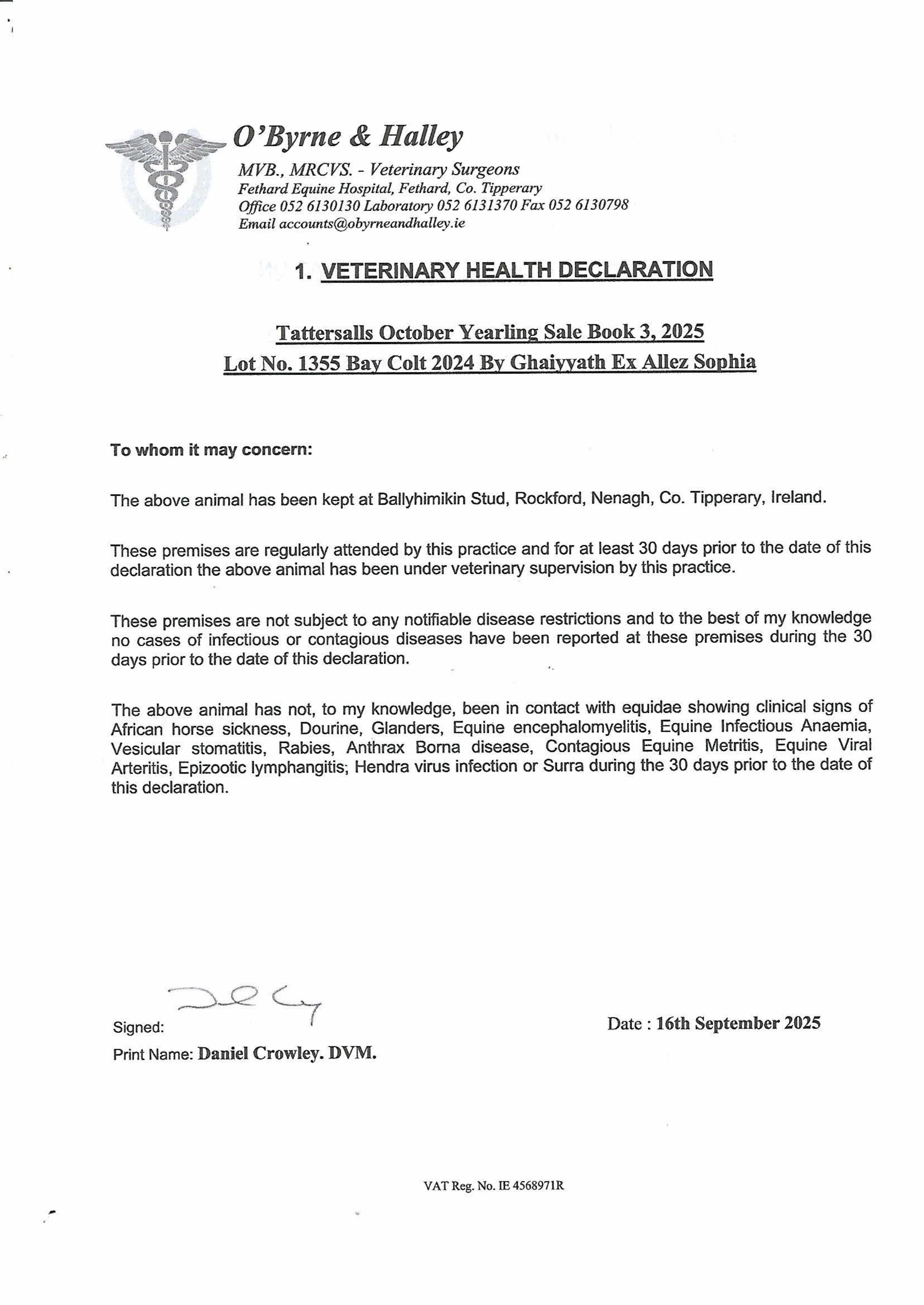 Consignor: Ballyhimikin Stud, Ireland