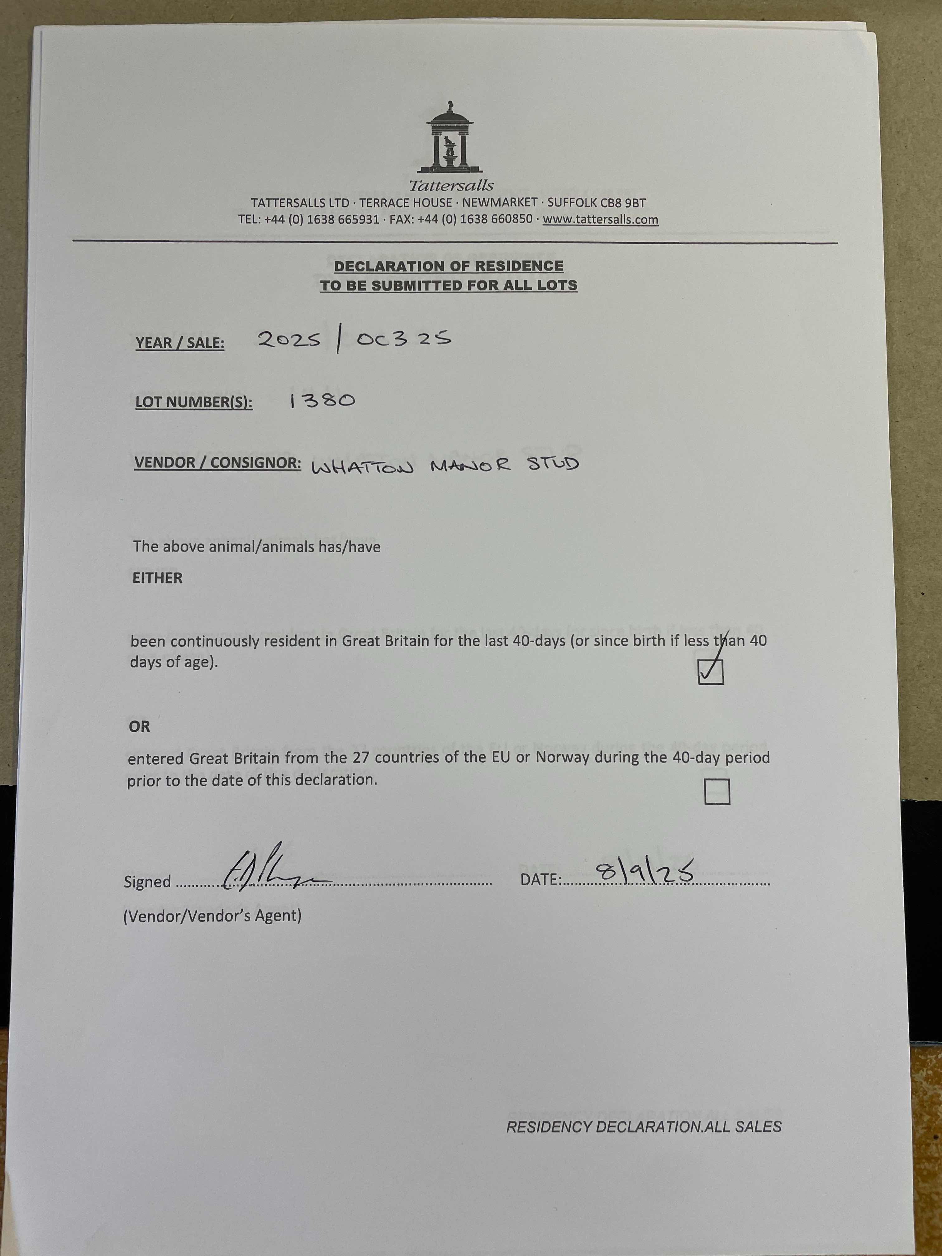 October Yearling Sale, Book 2 2024 lot 607 F. by Bated Breath (GB) 2023, Whatton Manor Stud=>Vendor 26,000 gns