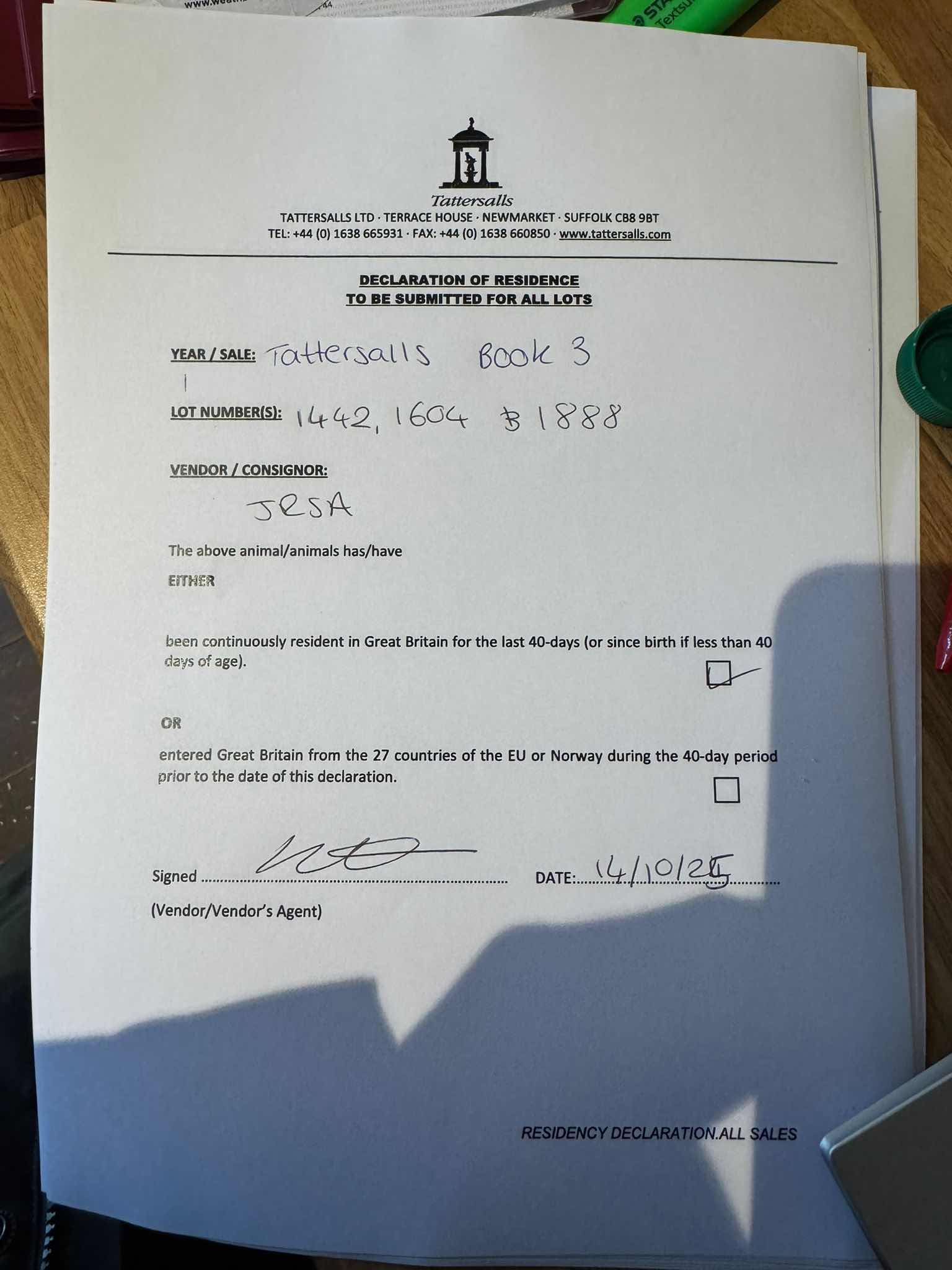 Consignor: Jamie Railton (Agent)