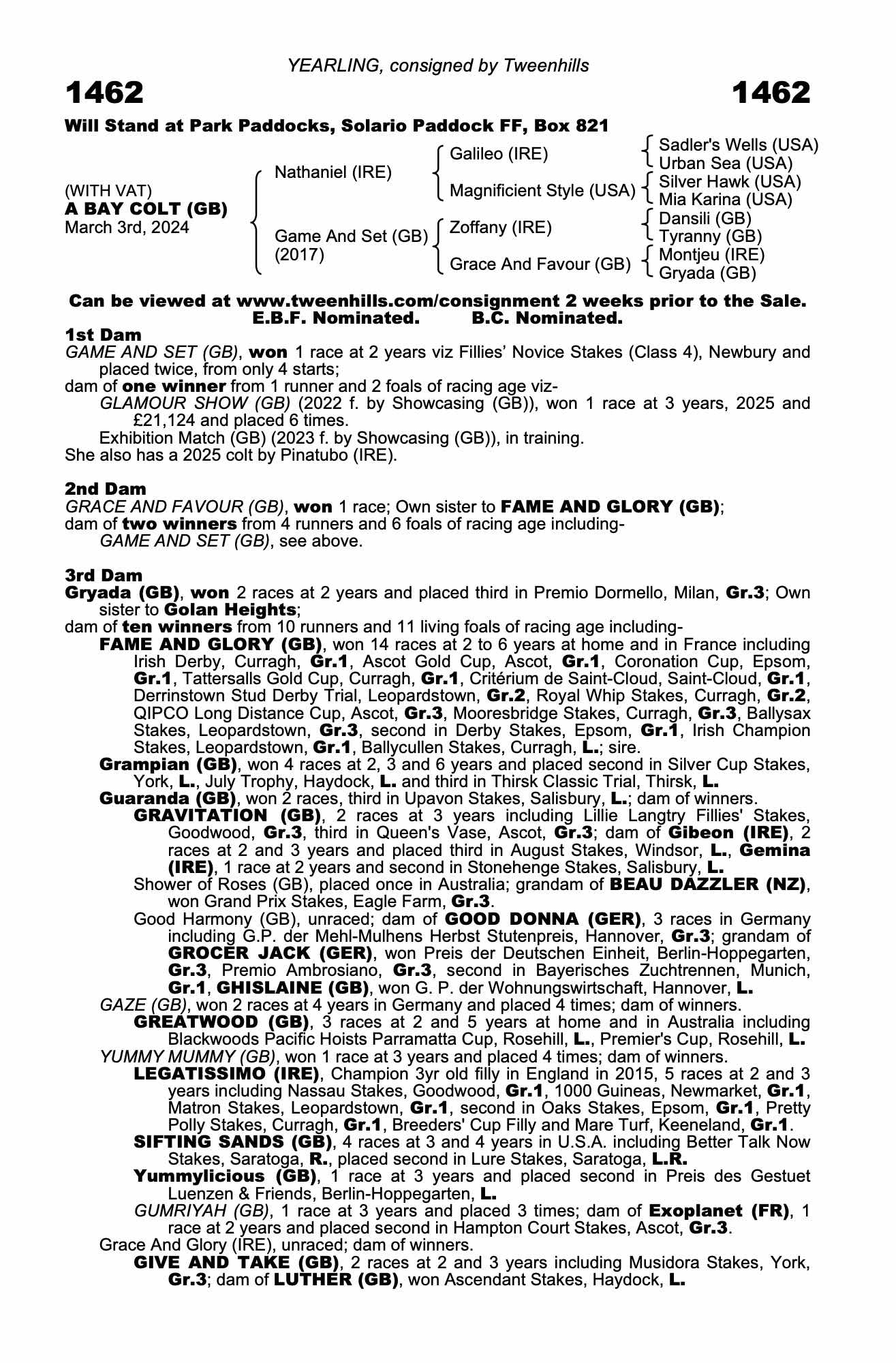 Lot 1462 Nathaniel (IRE) /Game And Set (GB) B.C. (GB)