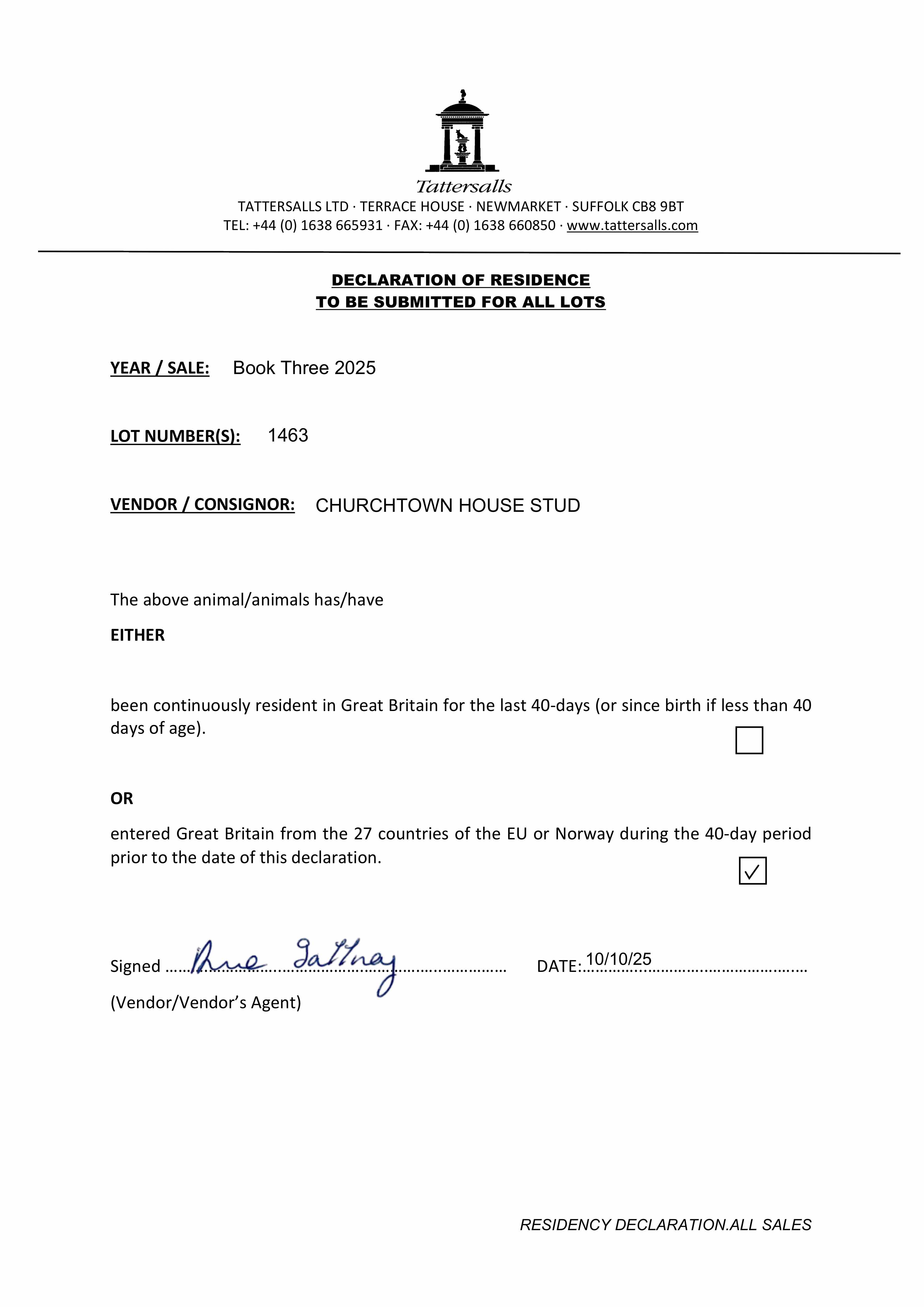 Consignor: Churchtown House Stud, Ireland