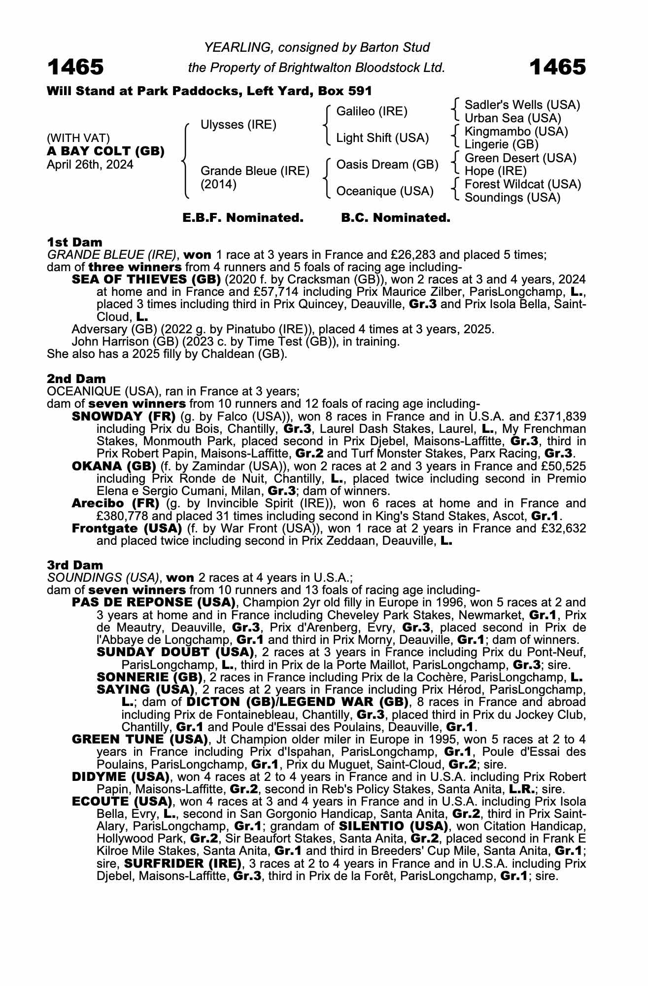 Autumn Horses In Training Sale 2022 lot 1007 Kodiac Blue (GB) (G. by Kodiac (GB)), Baroda Stud, Ireland=>Valfredo Valiani 2,000 gns