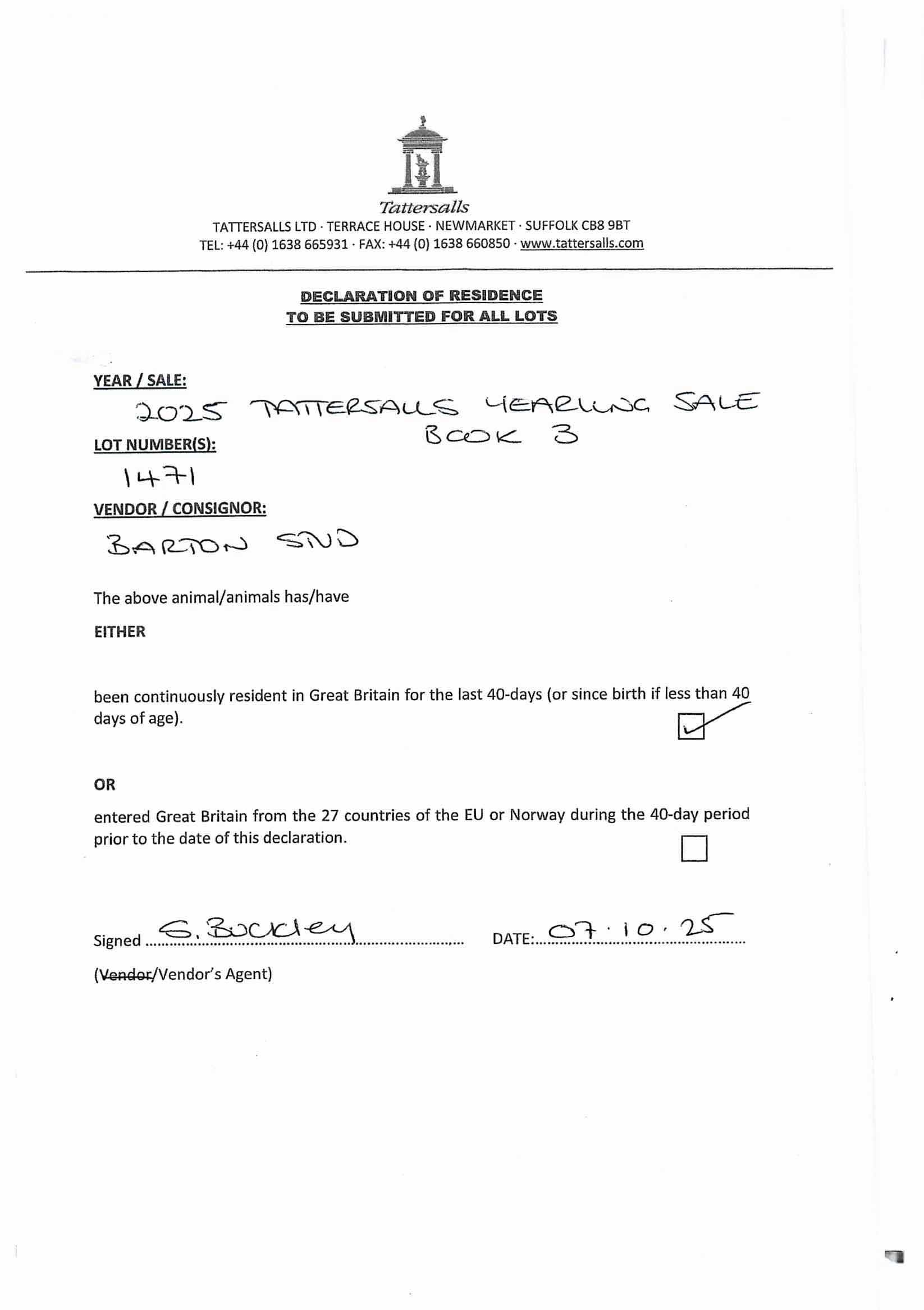 Consignor: Barton Stud