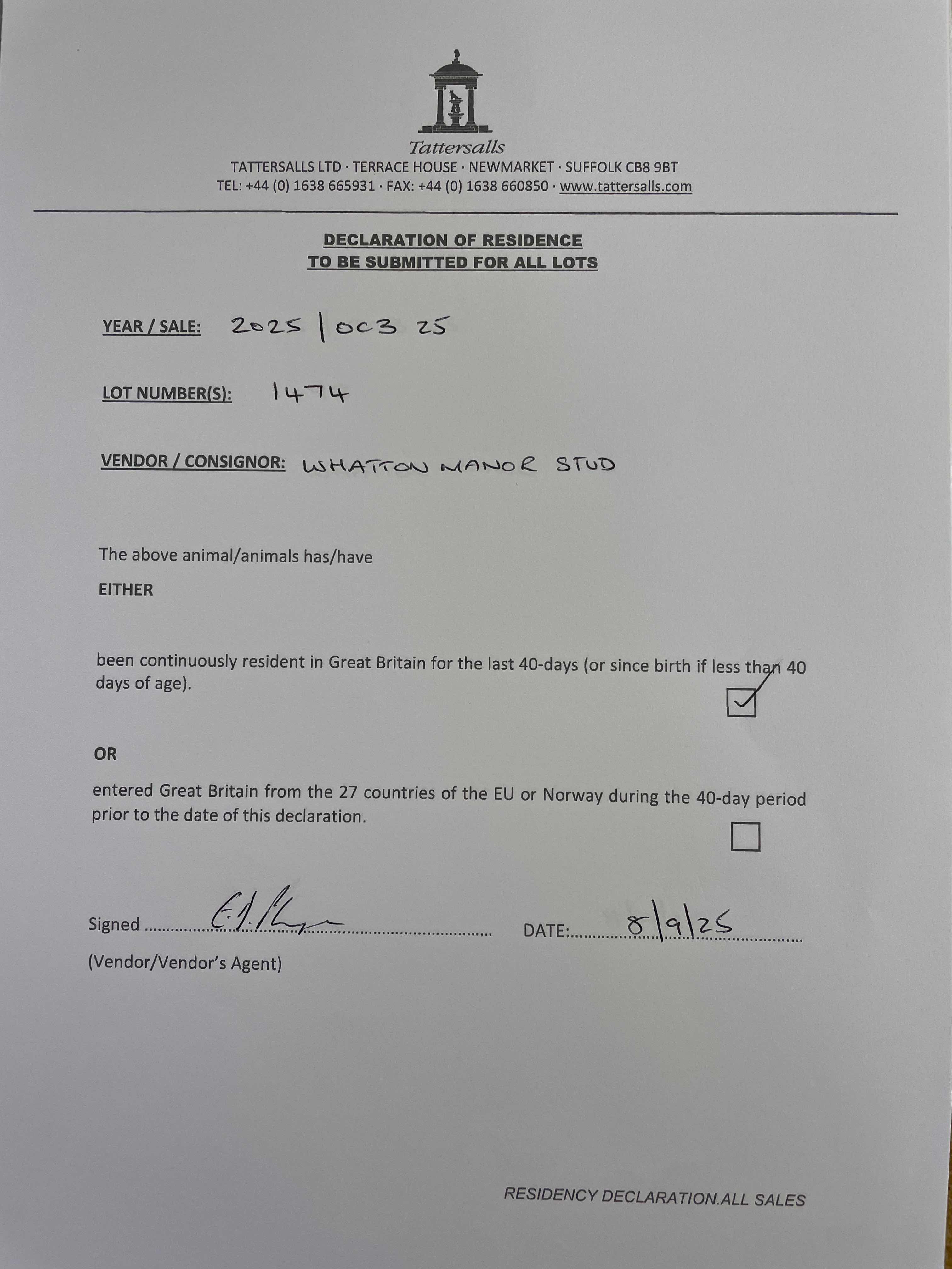 Somerville Yearling Sale 2024 lot 187 F. by Time Test (GB) 2023, Whatton Manor Stud=>Richard Knight Bloodstock Agent 1,000 gns