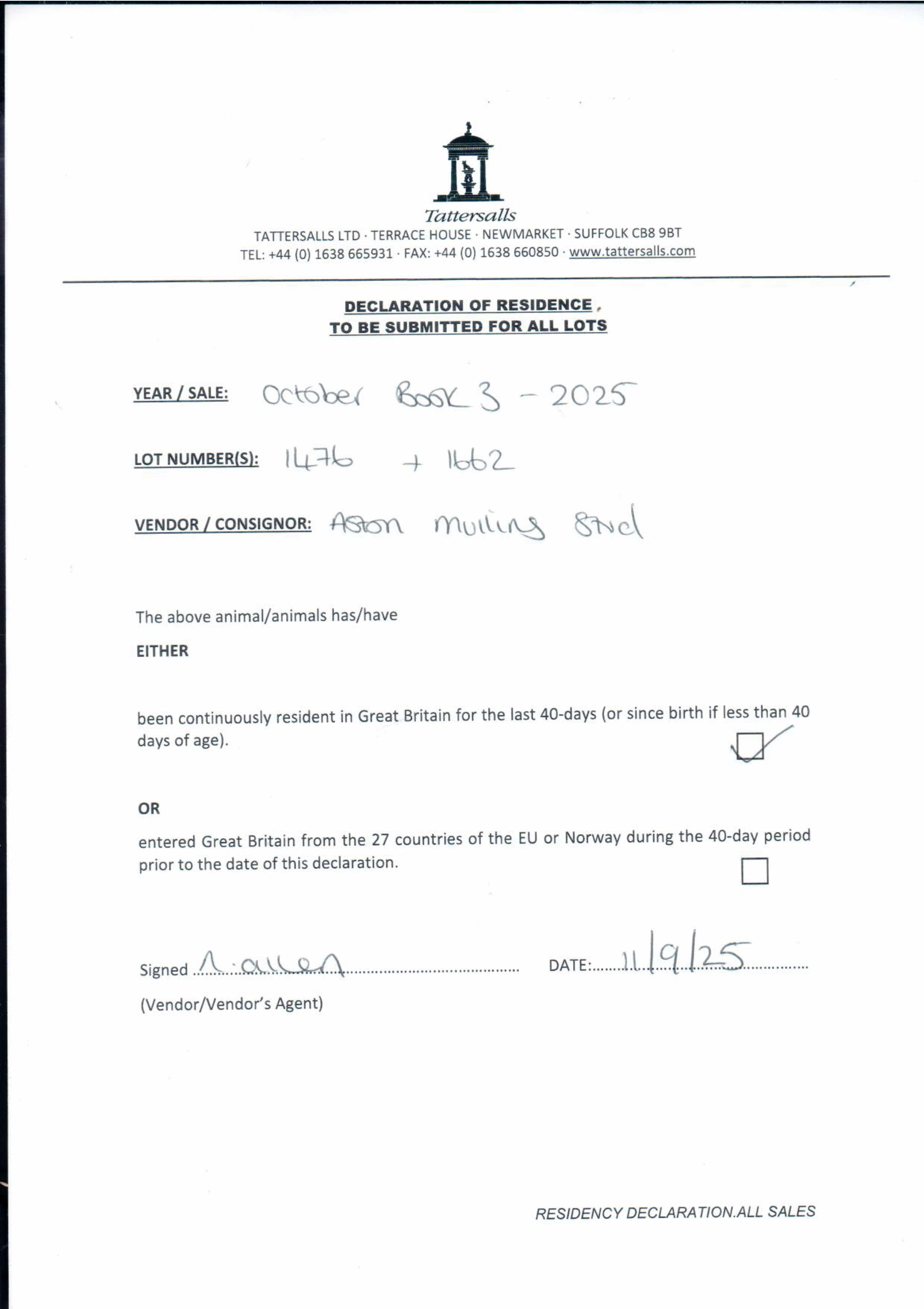 Consignor: Aston Mullins Stud