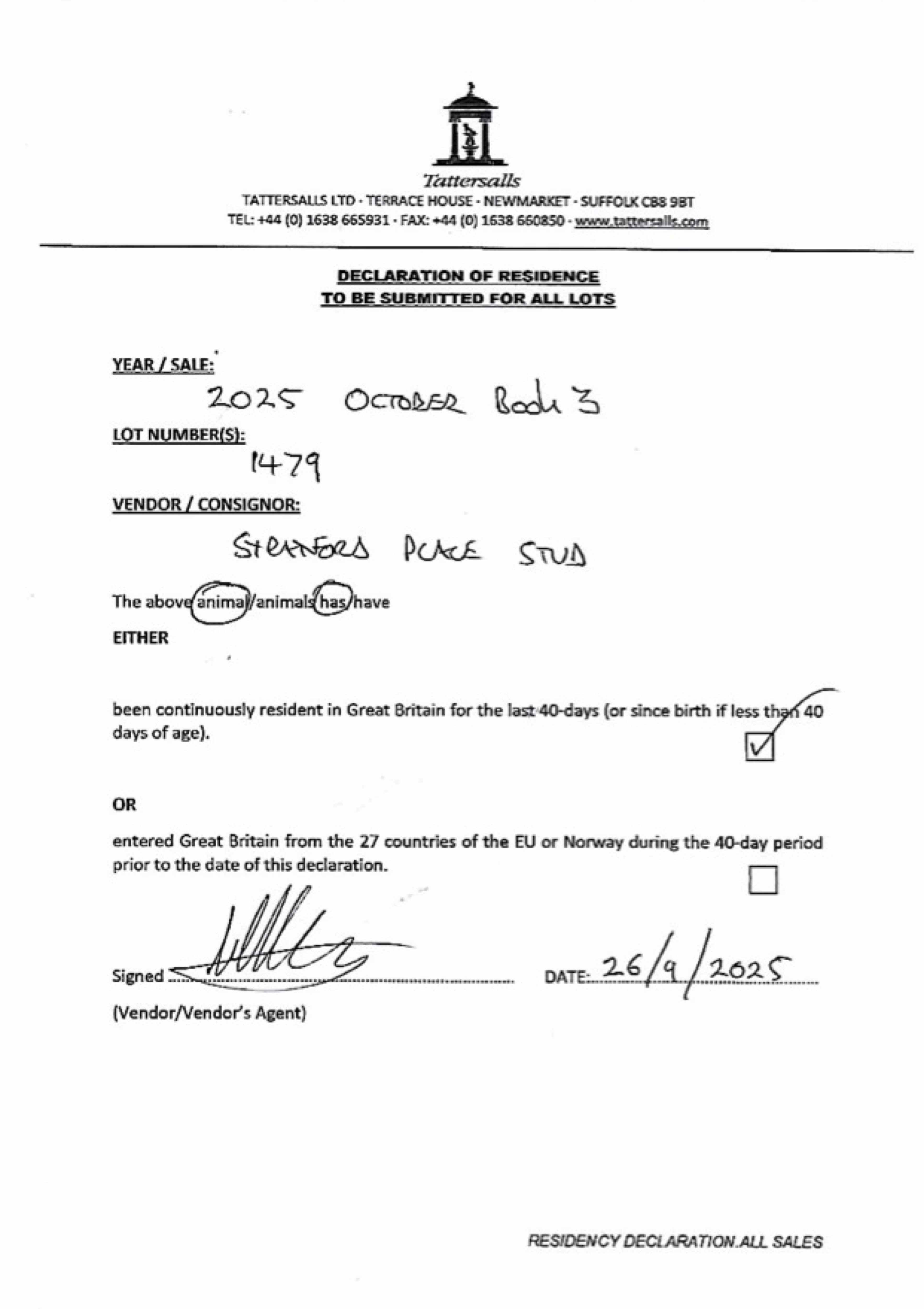 Consignor: Stratford Place Stud