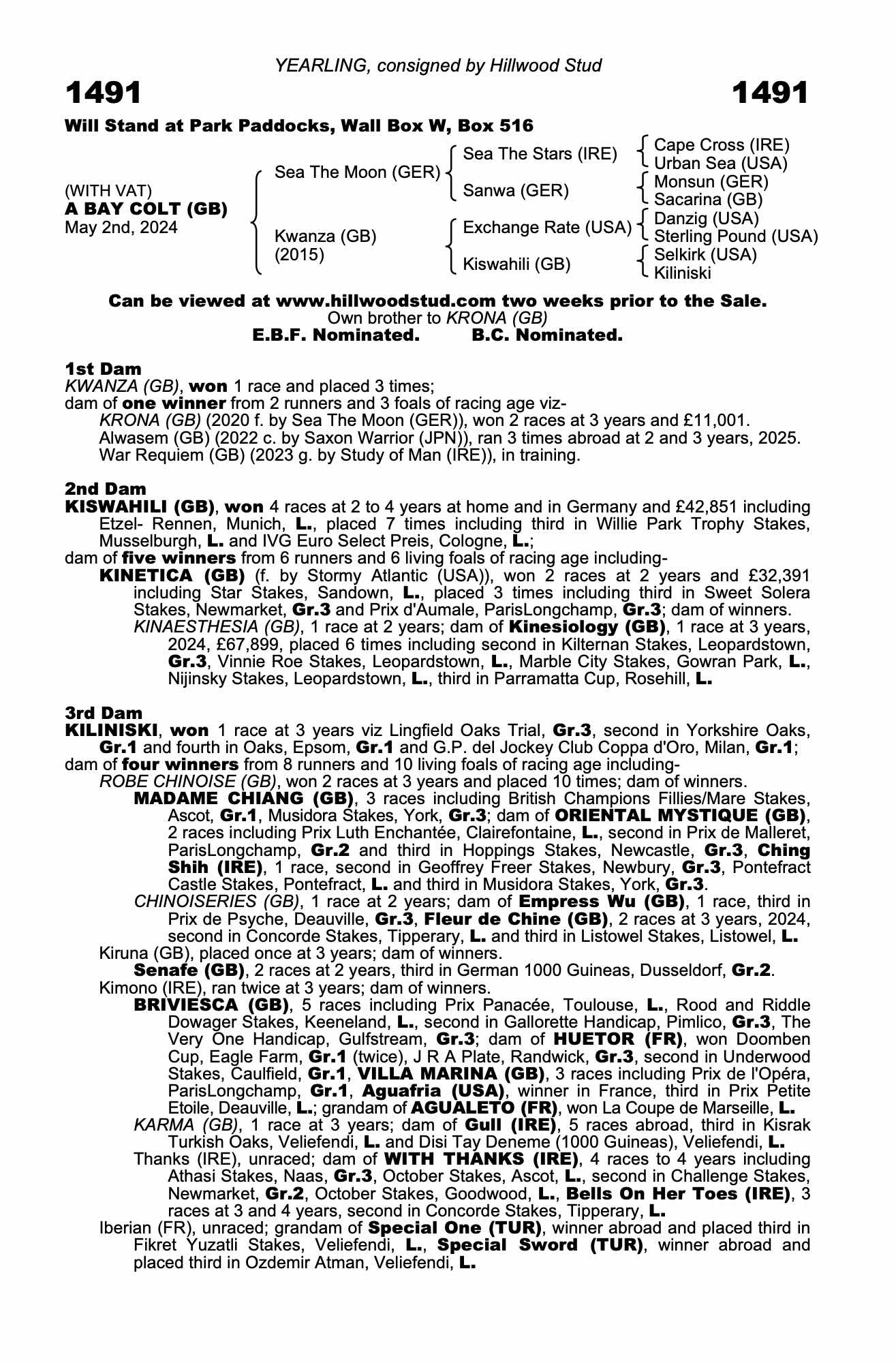 Lot 1491 Sea The Moon (GER) /Kwanza (GB) B.C. (GB)