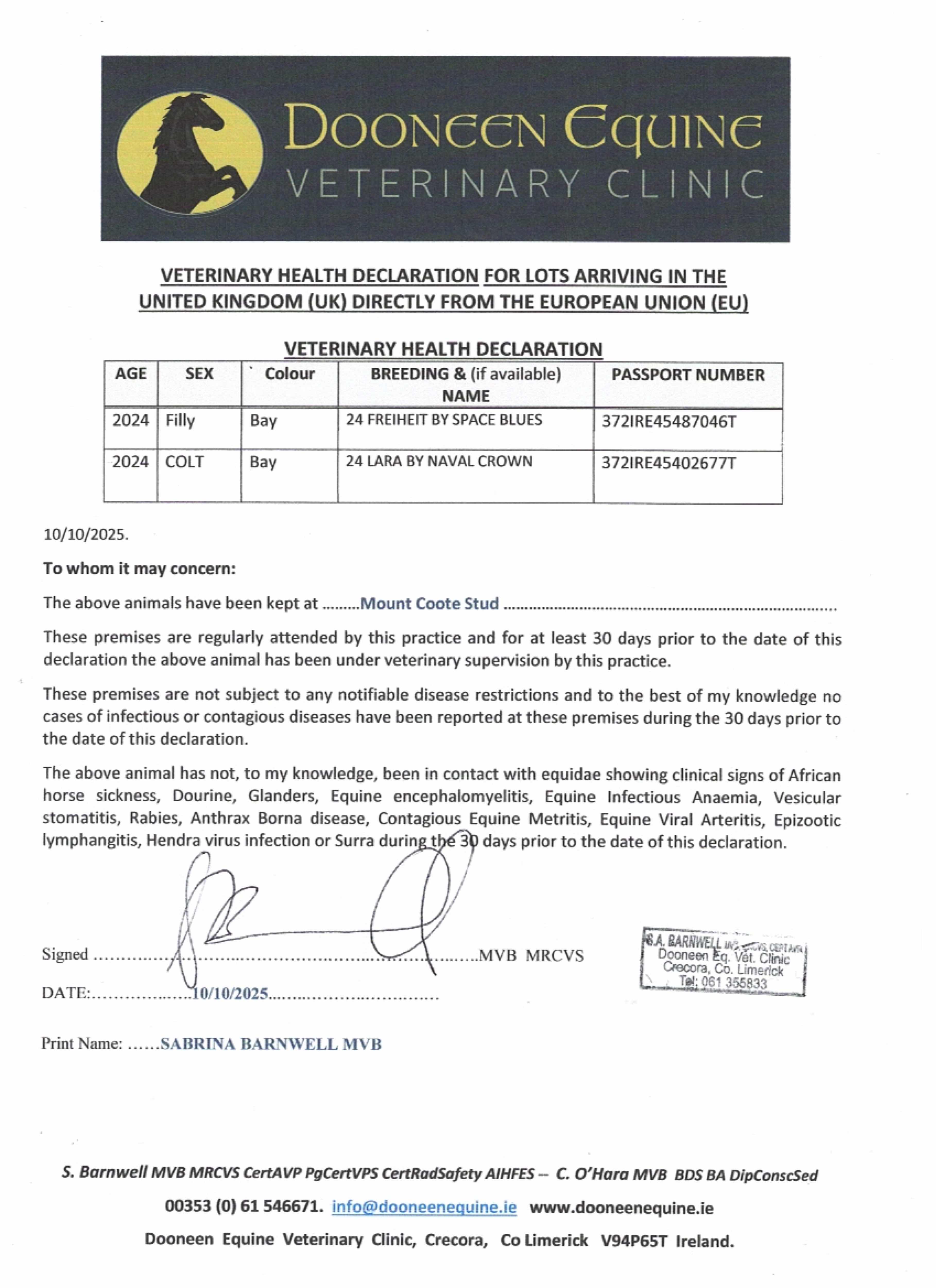 Under 3rd dam, BARI (IRE), dam of: LAURELIN (IRE), 5 races at 2 and 3 years, 2025 in U.S.A. including Saratoga Oaks Invitational Stakes, Saratoga, Gr.2.
