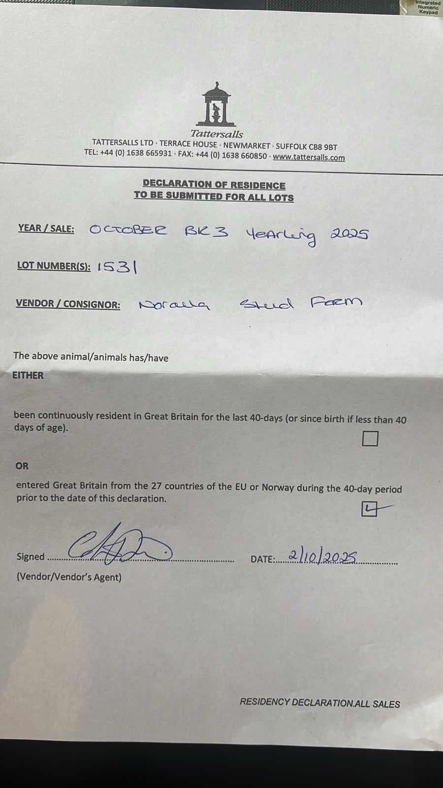 Consignor: Noralla Stud Farm, Ireland