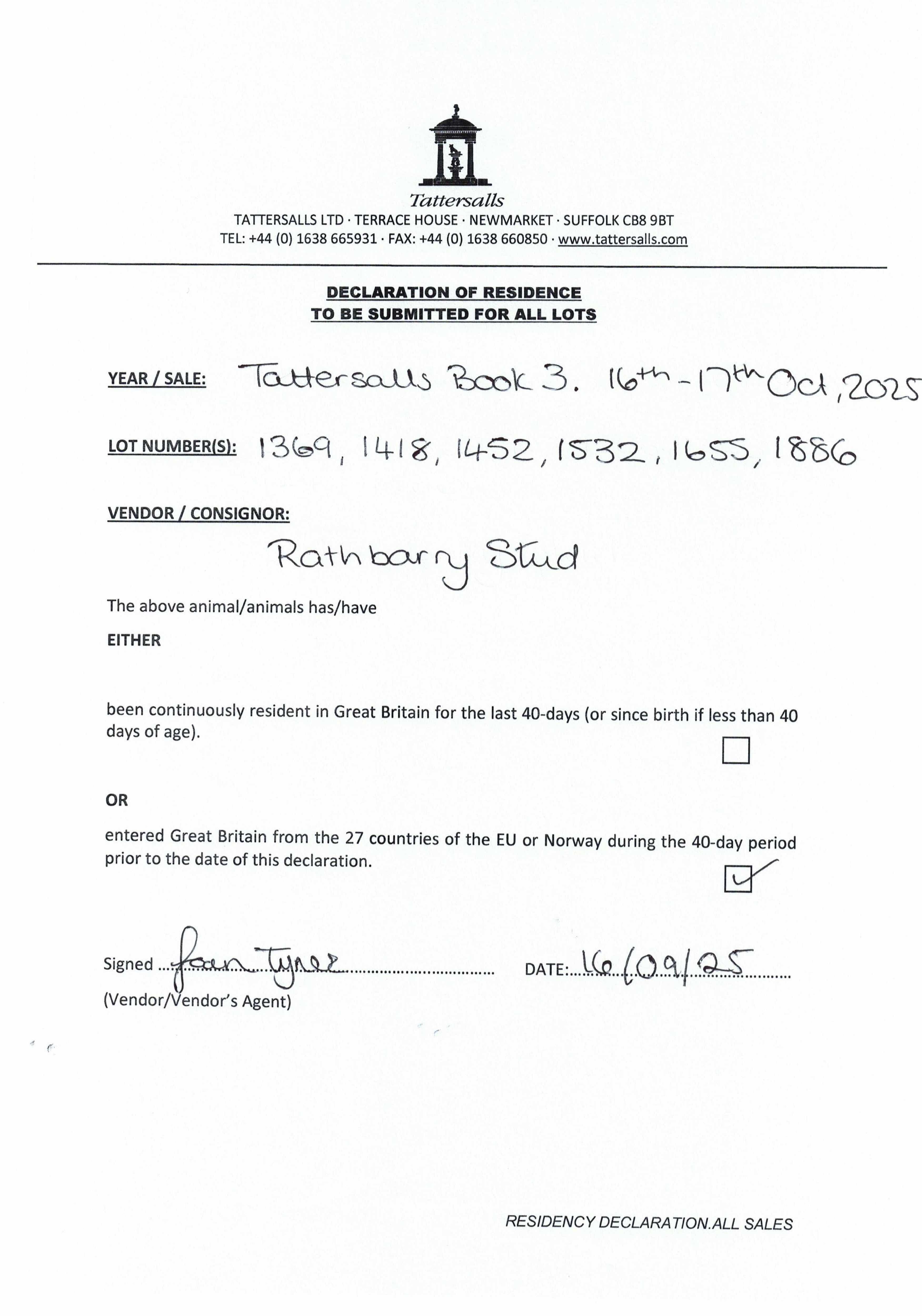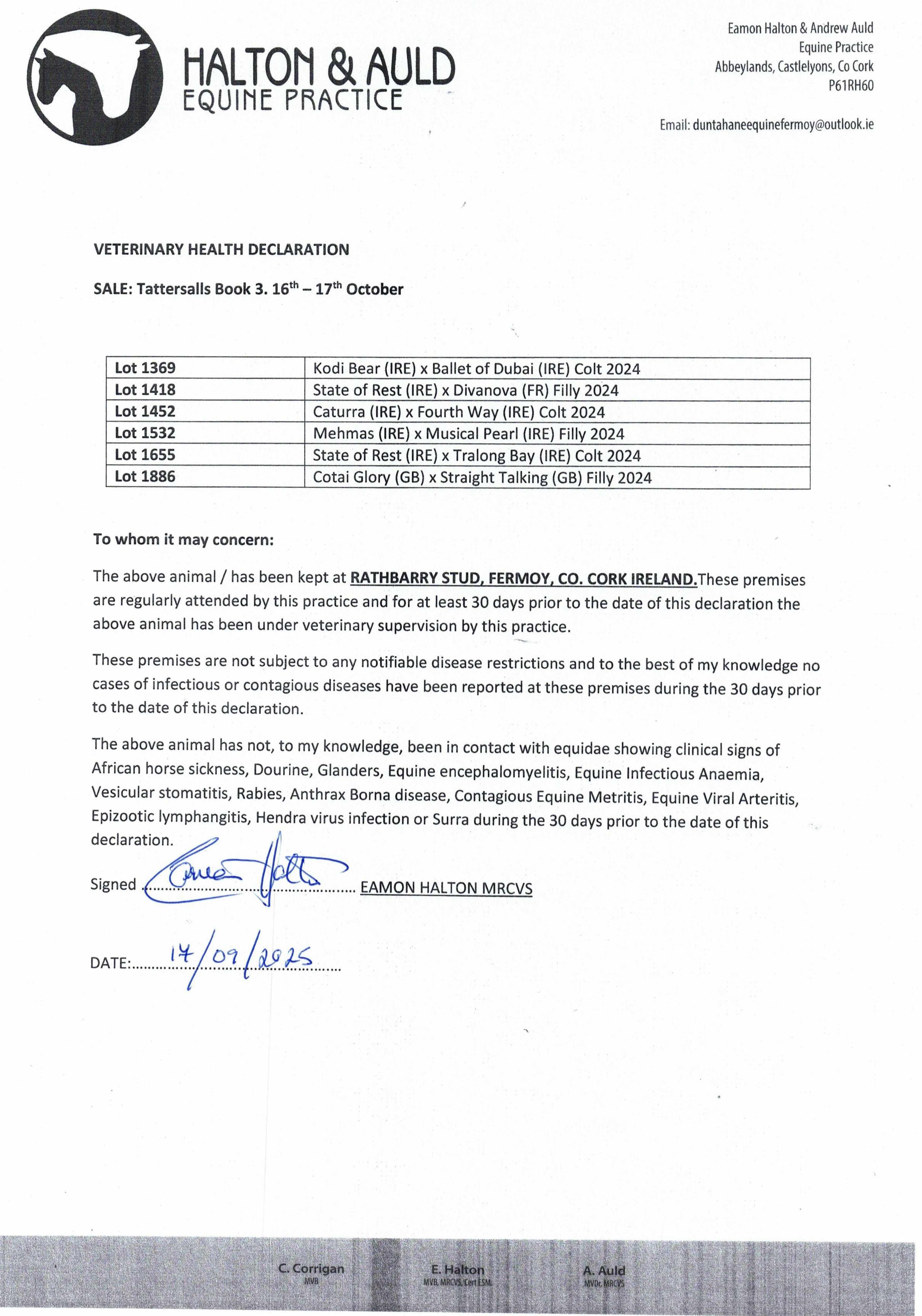 Consignor: Rathbarry Stud, Ireland (Agent)