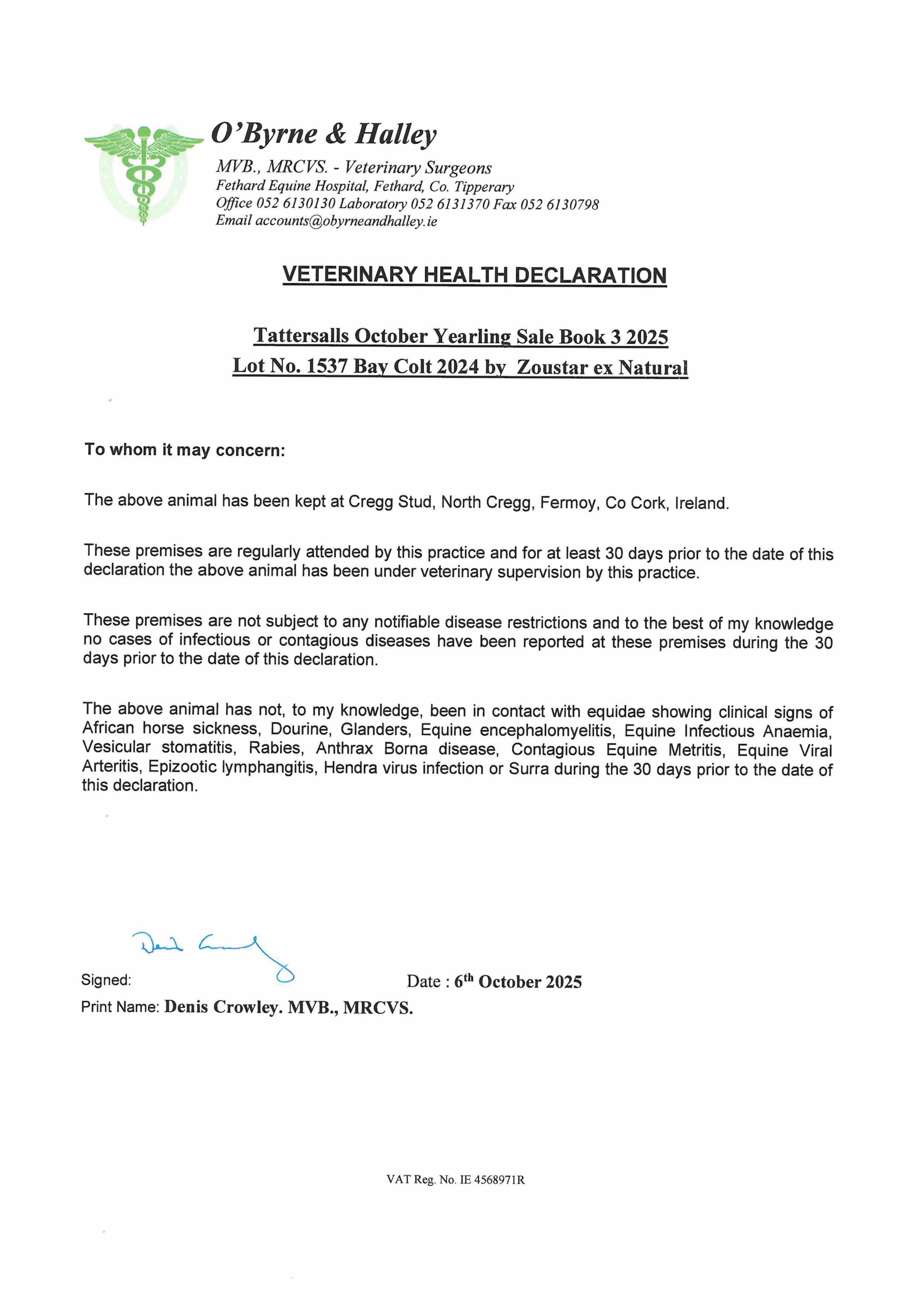 Consignor: Cregg Stud, Ireland